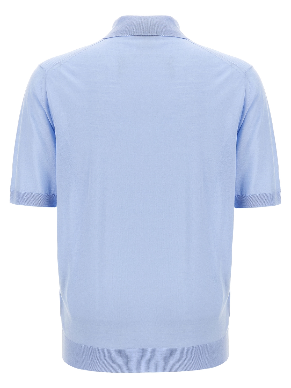 Поло из чистой шерсти с вышитым логотипом спереди, воротником и пуговицами, короткими рукавами.