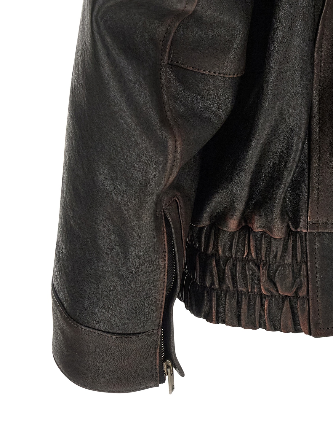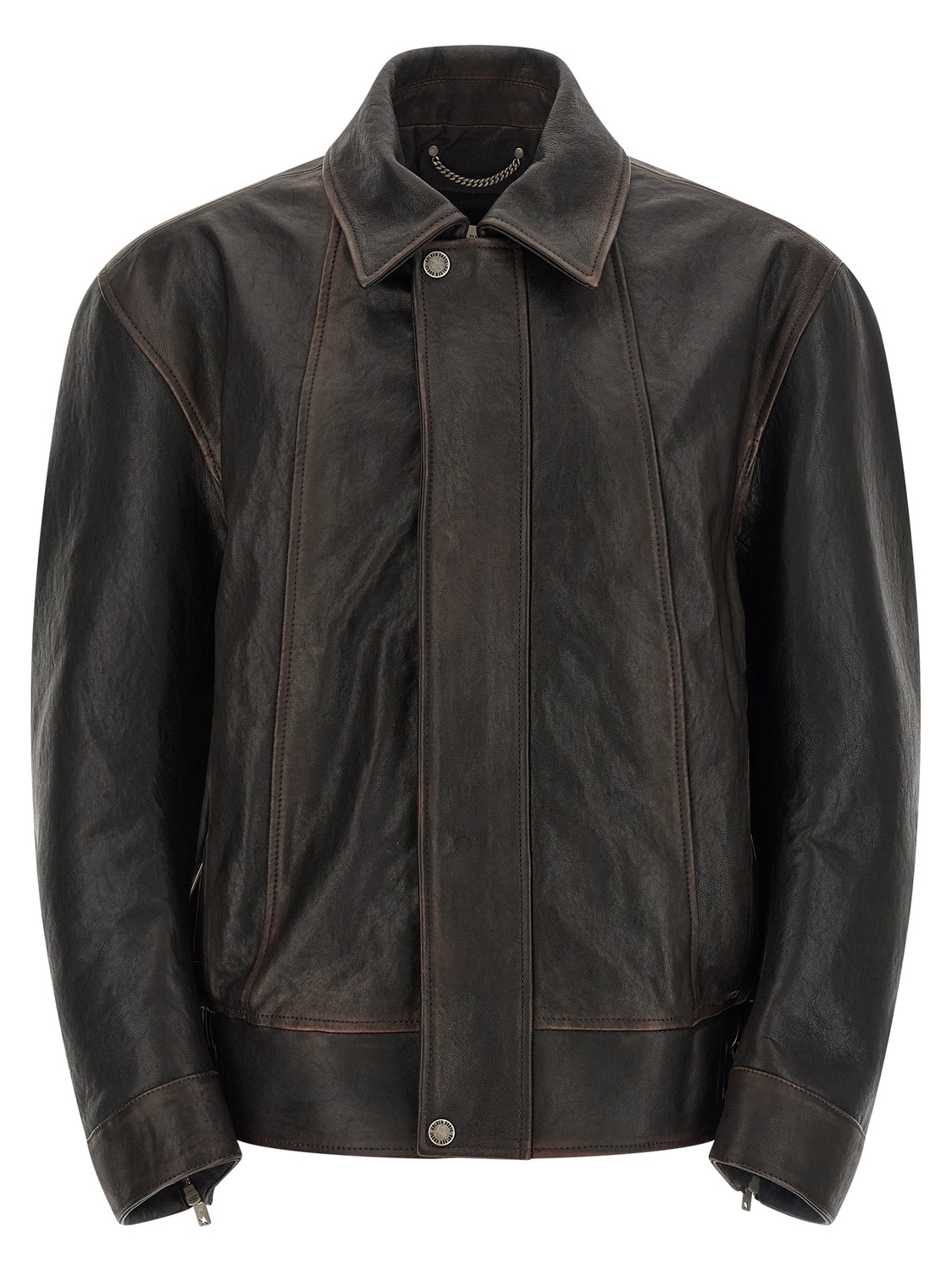Кожаная бомбер-куртка 'Prince' с воротником-рубашкой, застежкой-молнией спереди, эластичным поясом, длинными рукавами с манжетами и молнией.