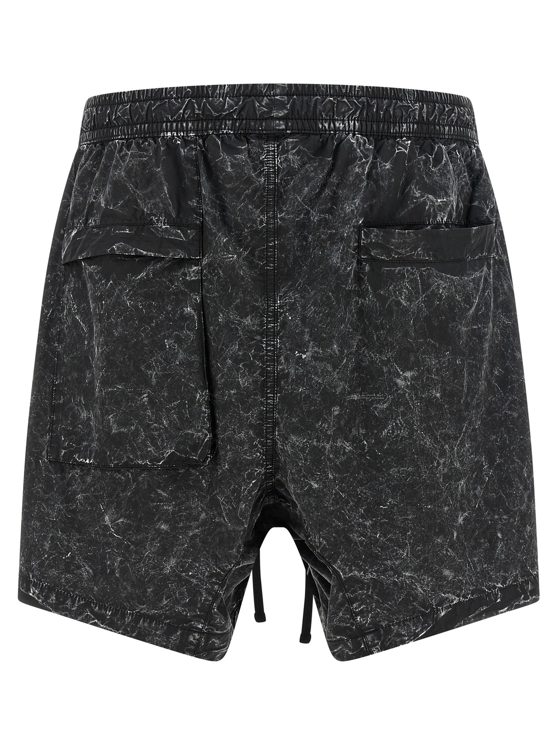 Бермуда-шорты из хлопка '37' с мраморным эффектом, заниженной линией шагового шва, эластичным поясом на кулиске, ширинкой на пуговицах, карманами.