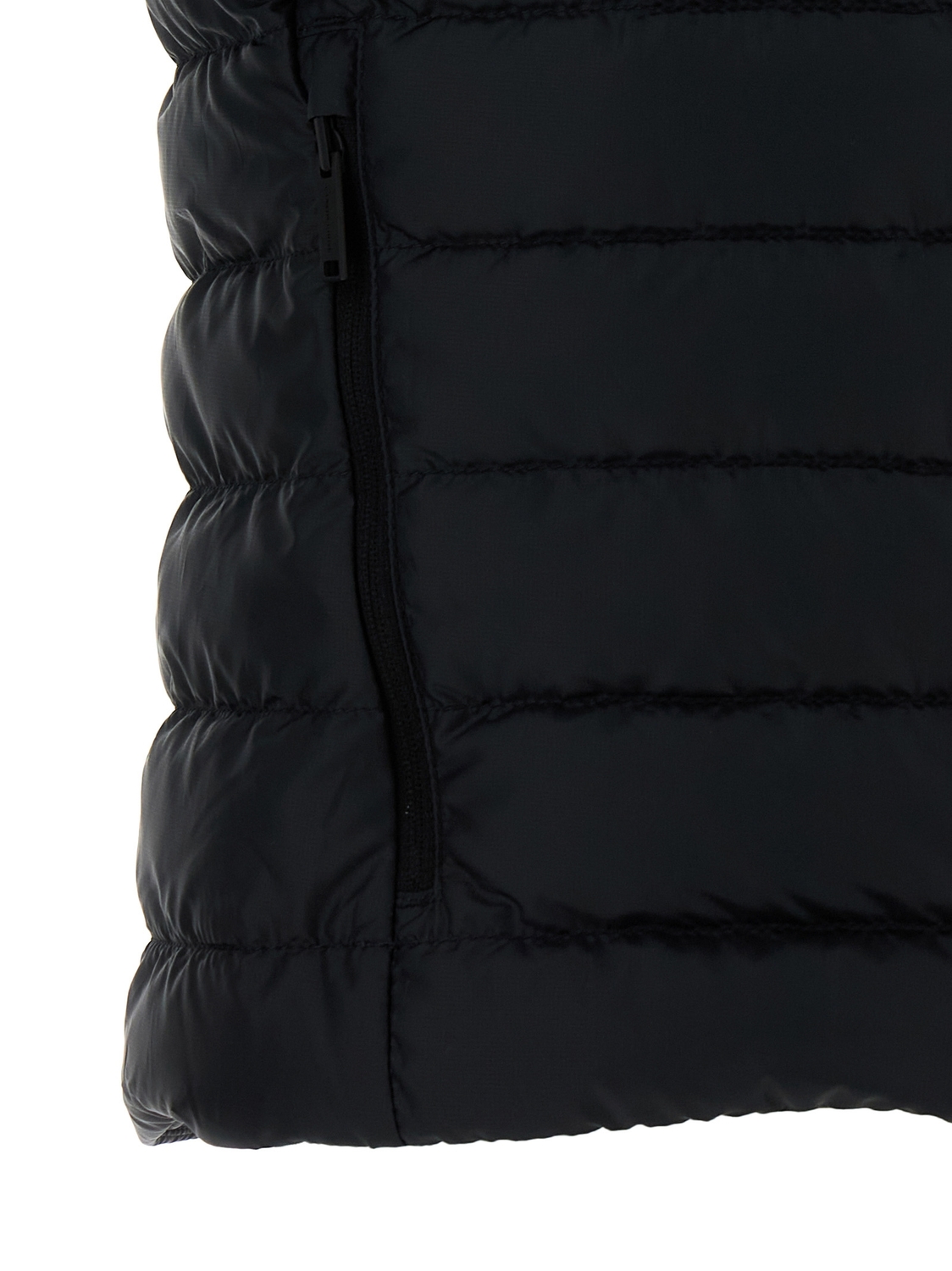Жилет 'Aethera' из стеганой технической ткани, слегка утепленный утиным пухом, с однотонной нашивкой с логотипом и застежкой на молнию спереди, стойкой-воротником, карманами и кулиской по низу.