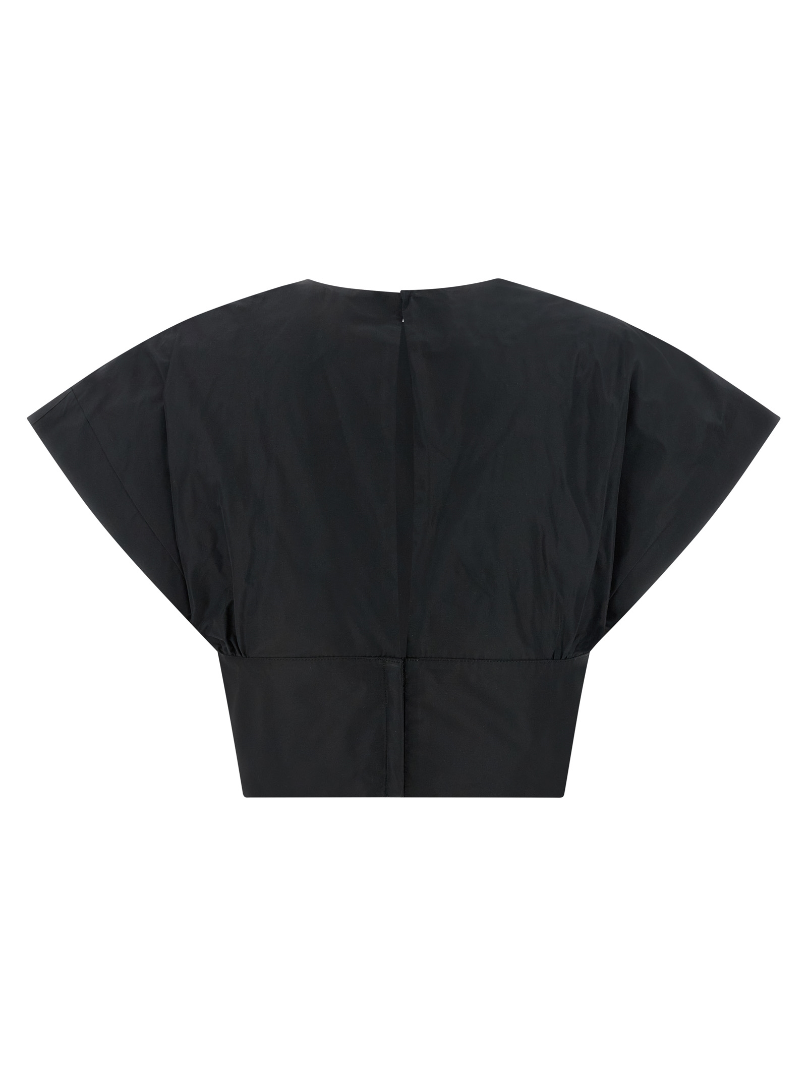 Топ из тафты 'Asparago', укороченная модель, вытачки спереди и сзади, круглый вырез, застежка на пуговицу и крючки сзади с каплевидным вырезом, короткие рукава.