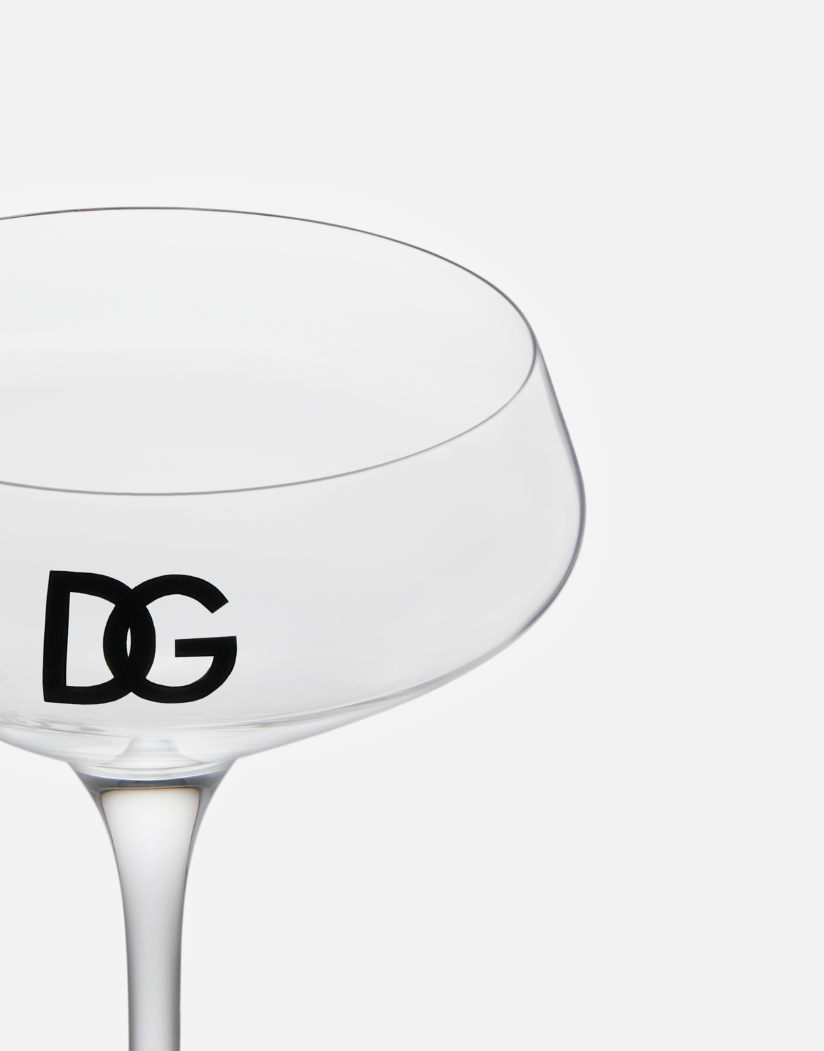 Смелое заявление с узнаваемыми линиями: логотип DG - идеальный синтез истории и идентичности бренда, здесь представленный как главный акцент этого элегантного и тщательно декорированного бокала для шампанского.
