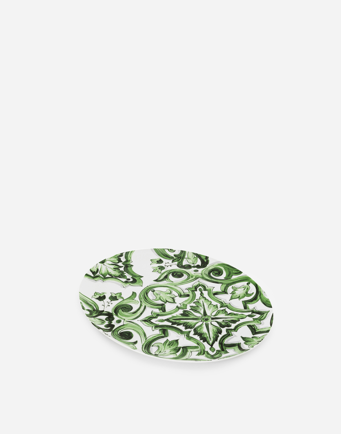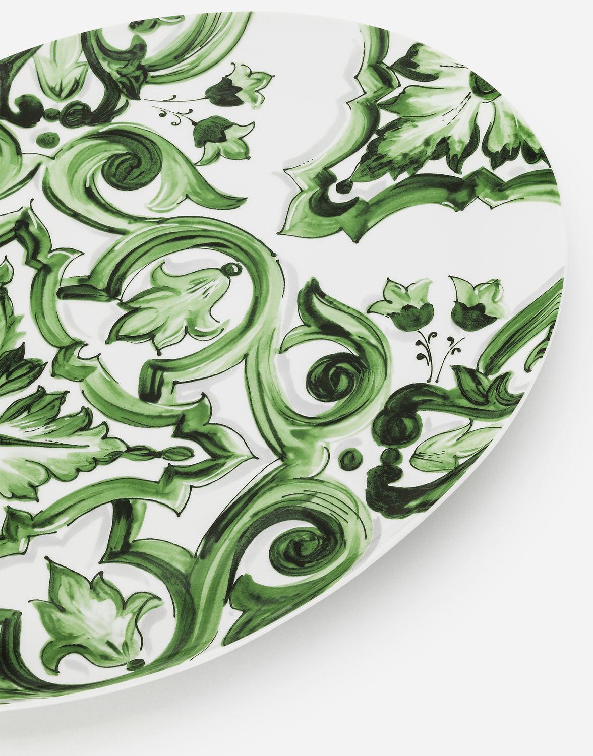Благодаря этому блюду из фарфора Verde Maiolica, являющемуся выразительным воплощением традиционного местного ремесленного искусства Fatto a Mano, Dolce&Gabbana прославляет прибрежные пейзажи Южной Италии, напоенные ароматами и красками средиземноморского маквиса.