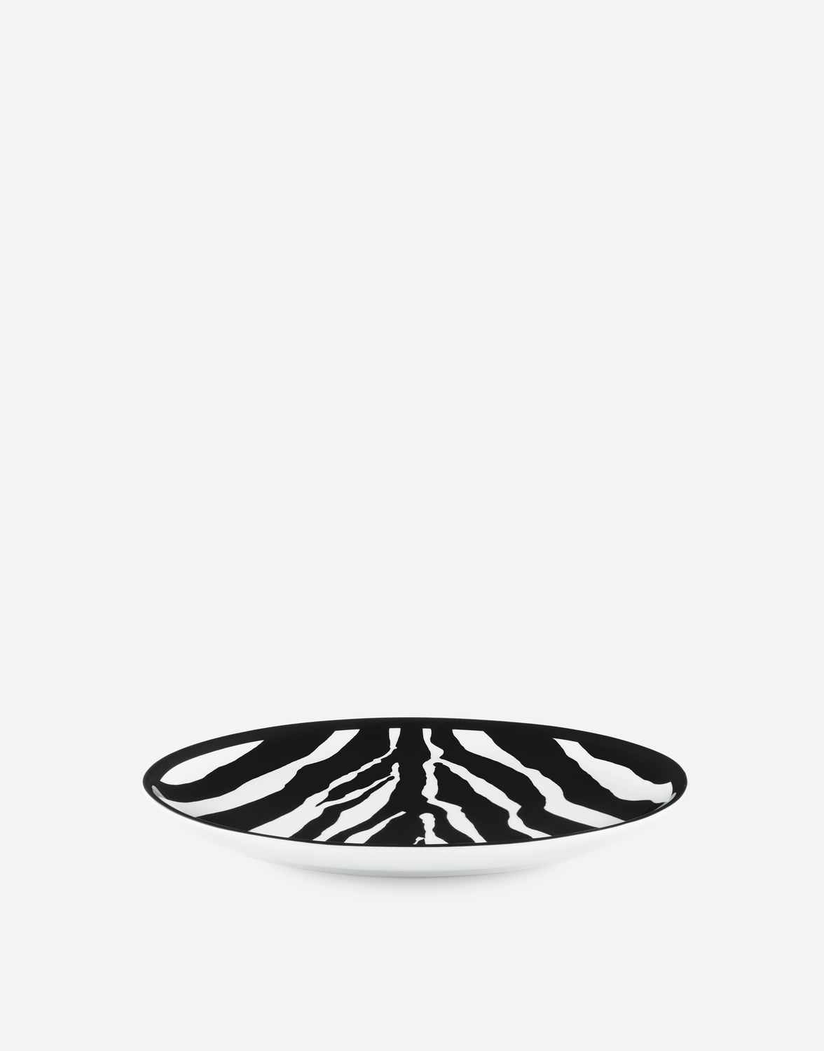 Зебровый узор на этом элегантном фарфоровом блюде символизирует дуализм, лежащий в основе ДНК Dolce&Gabbana: это стилистический элемент, балансирующий между прошлым и будущим, ремесленничеством и технологиями, традициями и инновациями.