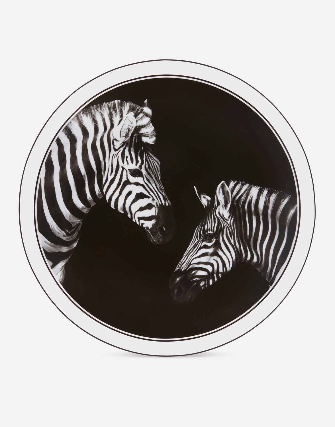 Мотив зебры на этой элегантной фарфоровой тарелке, вдохновленный архивным принтом на платке, символически отражает дуализм, лежащий в основе ДНК Dolce&Gabbana, - стилистический элемент, балансирующий между прошлым и будущим, ремесленничеством и технологиями, традицией и инновациями.