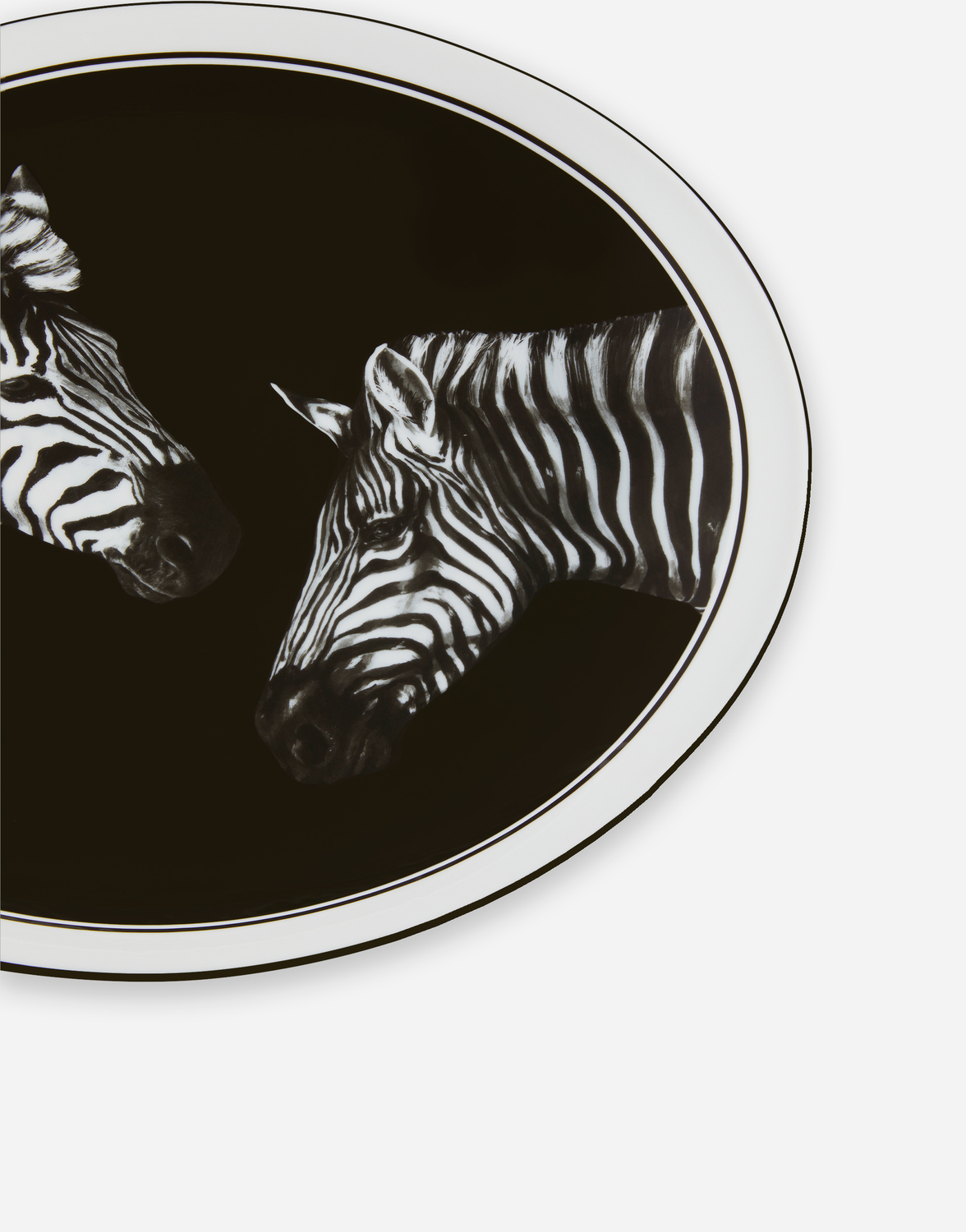 Мотив зебры на этом элегантном фарфоровом блюде, вдохновленный архивным принтом на платке, представляет собой символическое воплощение дуализма, лежащего в основе ДНК Dolce&Gabbana, стилистический элемент, балансирующий между прошлым и будущим, ремесленным мастерством и технологиями, традициями и инновациями.