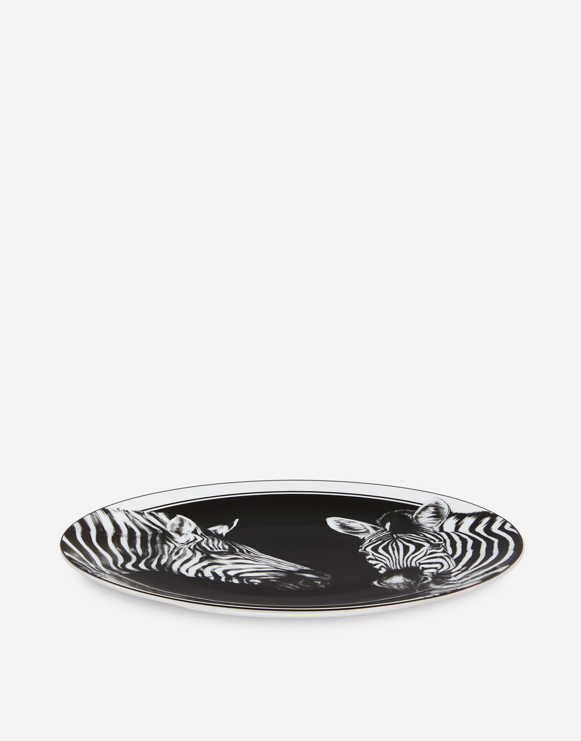 Мотив зебры на этом элегантном фарфоровом блюде, вдохновленный архивным принтом-фуляром, является символическим воплощением дуализма, лежащего в основе ДНК Dolce&Gabbana, стилистического элемента, который балансирует между прошлым и будущим, ремеслом и технологией, традицией и инновацией.