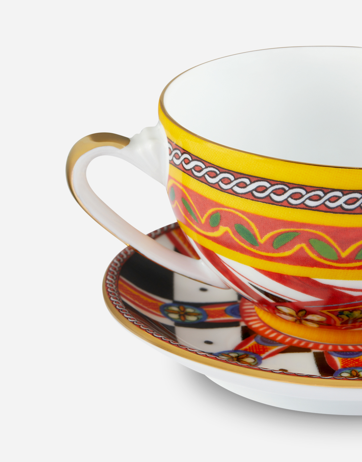 Эта изысканная чайная чашка с блюдцем с декоративным узором, вдохновленным принтом "фуляр", напоминает о карретто сичилиано: фольклорном элементе из региона, насыщенного традициями, ремесленным мастерством, пейзажами и исключительными цветами, которые всегда были в основе эстетики Dolce&Gabbana.