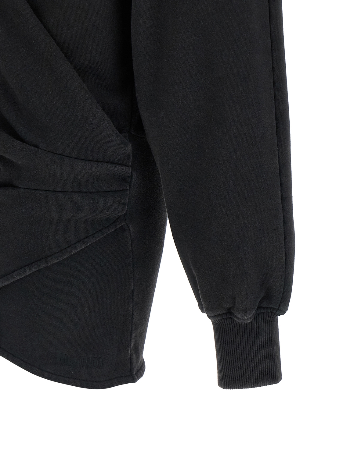 Выцветшее американское флисовое худи-платье мини с капюшоном, фасон-кошелек с широким V-образным вырезом, вышивкой логотипа в тон на груди, кулиской на талии, длинными широкими рукавами с манжетами.