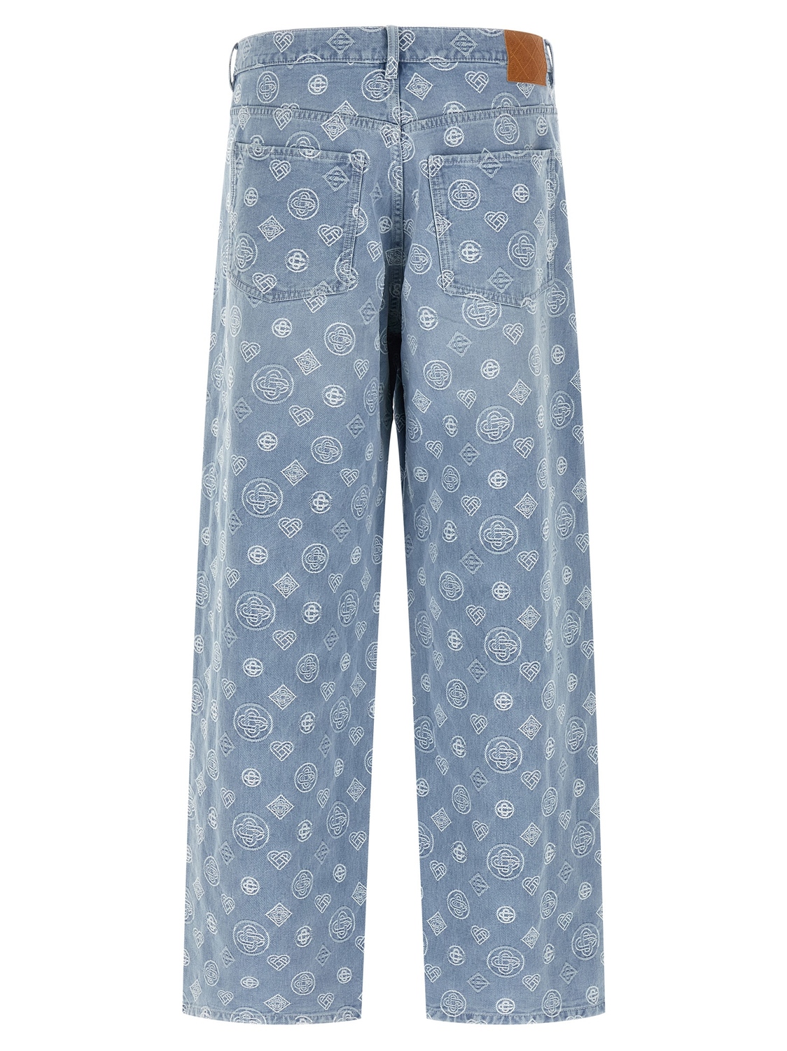 Джинсы из хлопкового денима с жаккардовым логотипом 'Honeydew' по всей поверхности, широкими прямыми штанинами, застежкой на молнию и пуговицу спереди, карманами и кожаной нашивкой с логотипом сзади.
