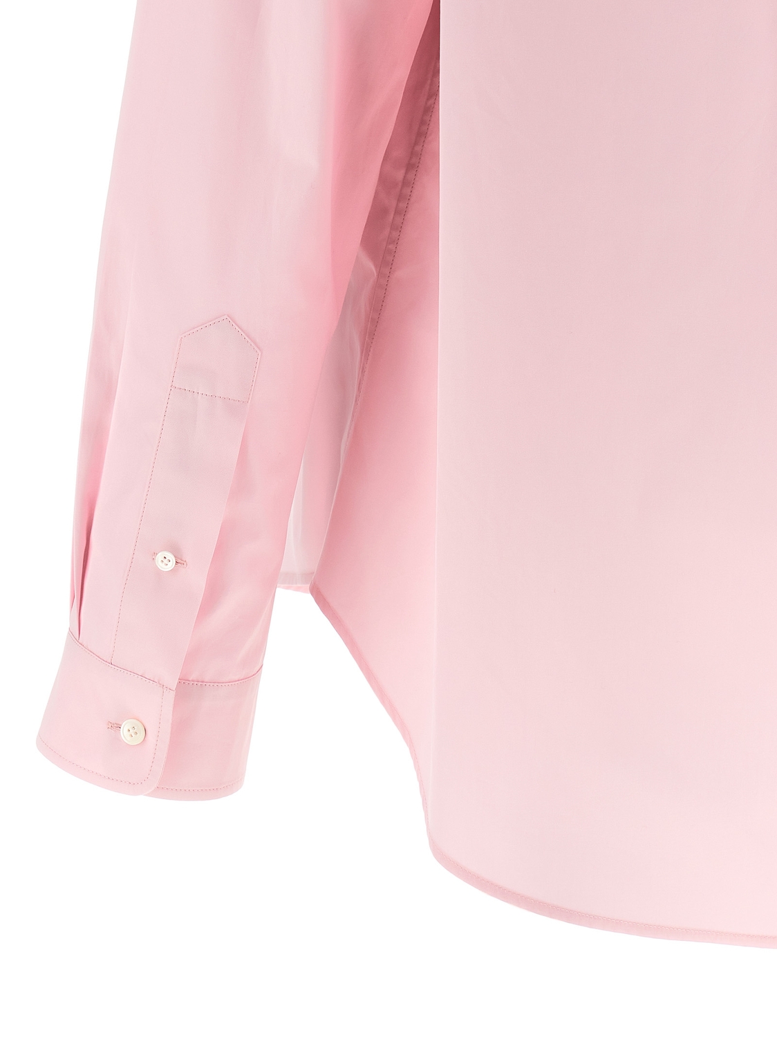 Рубашка из хлопкового поплина с контрастным воротником, вышивкой логотипа и застежкой на пуговицы спереди, длинными рукавами с манжетами и заниженными плечами.