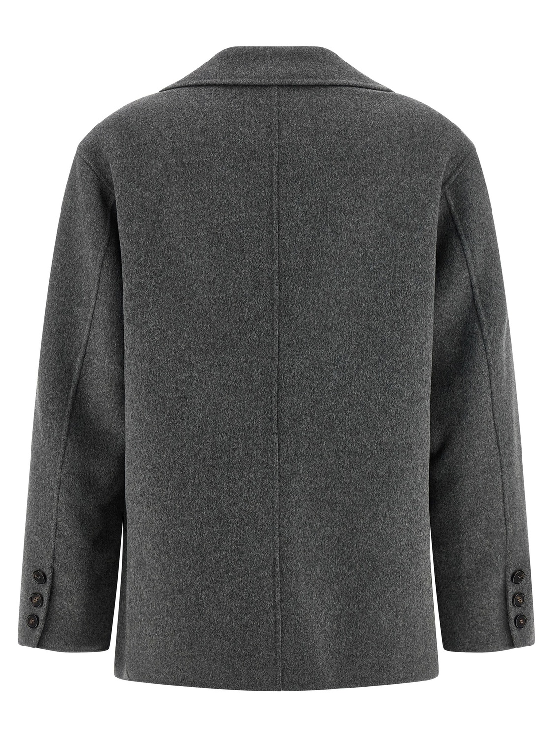Однобортный блейзер 'SmmElfi' из чистошерстяного драпа с застежкой на пуговицу спереди, лацканами, карманами, длинными рукавами со спущенной линией плеча, без подкладки.