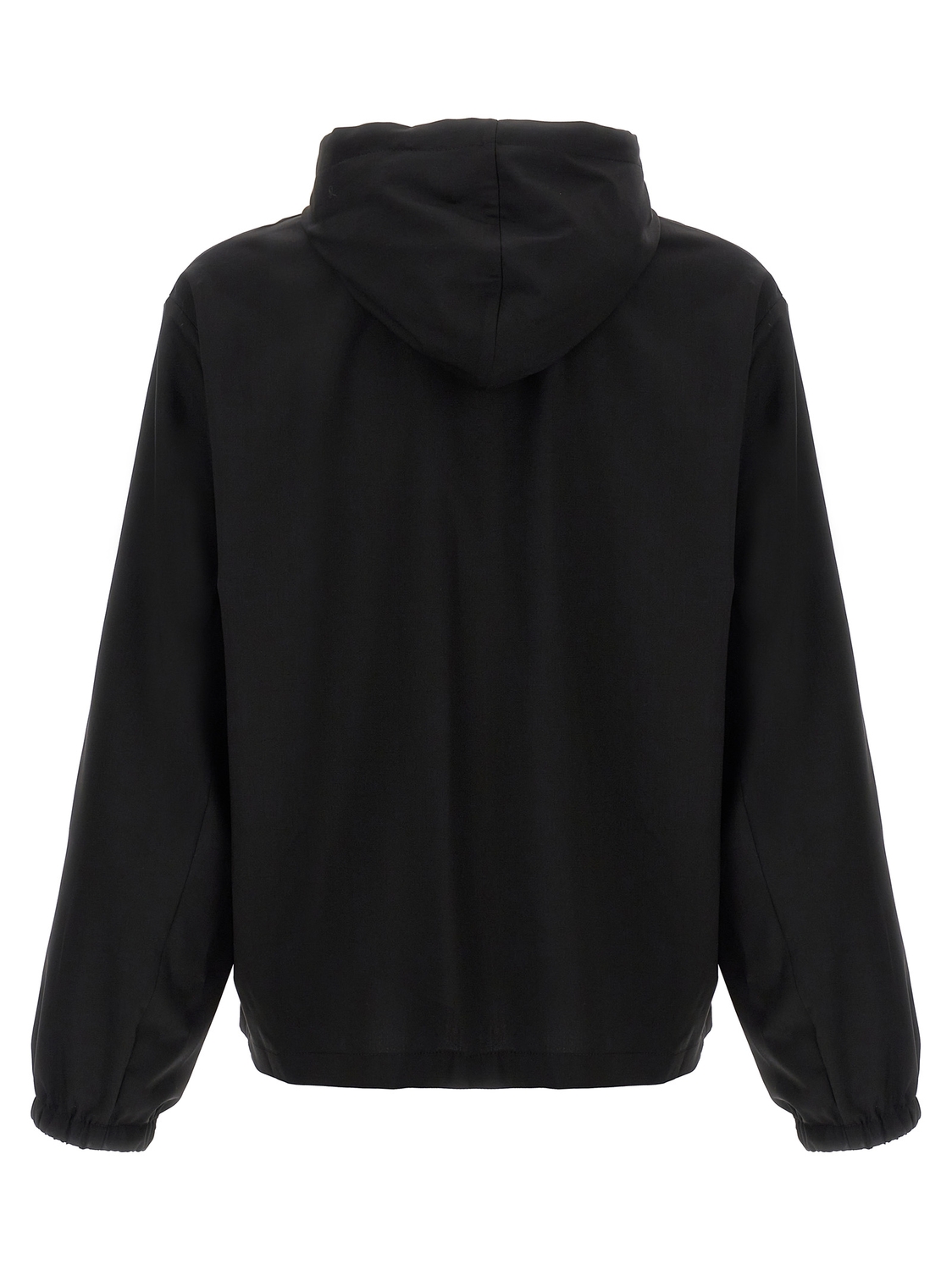Шерстяное худи с фирменной нашивкой спереди, застежкой-молнией, карманами, длинными рукавами с манжетами.