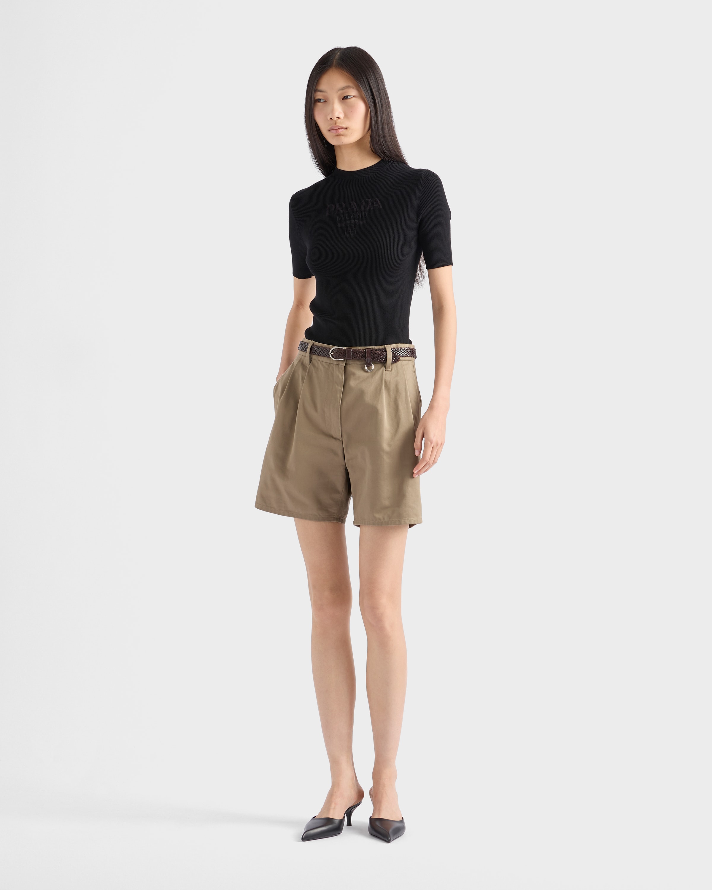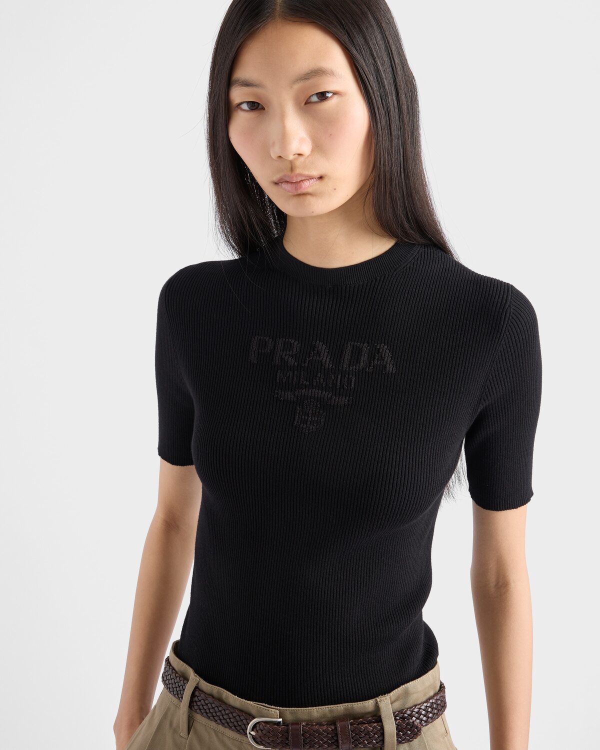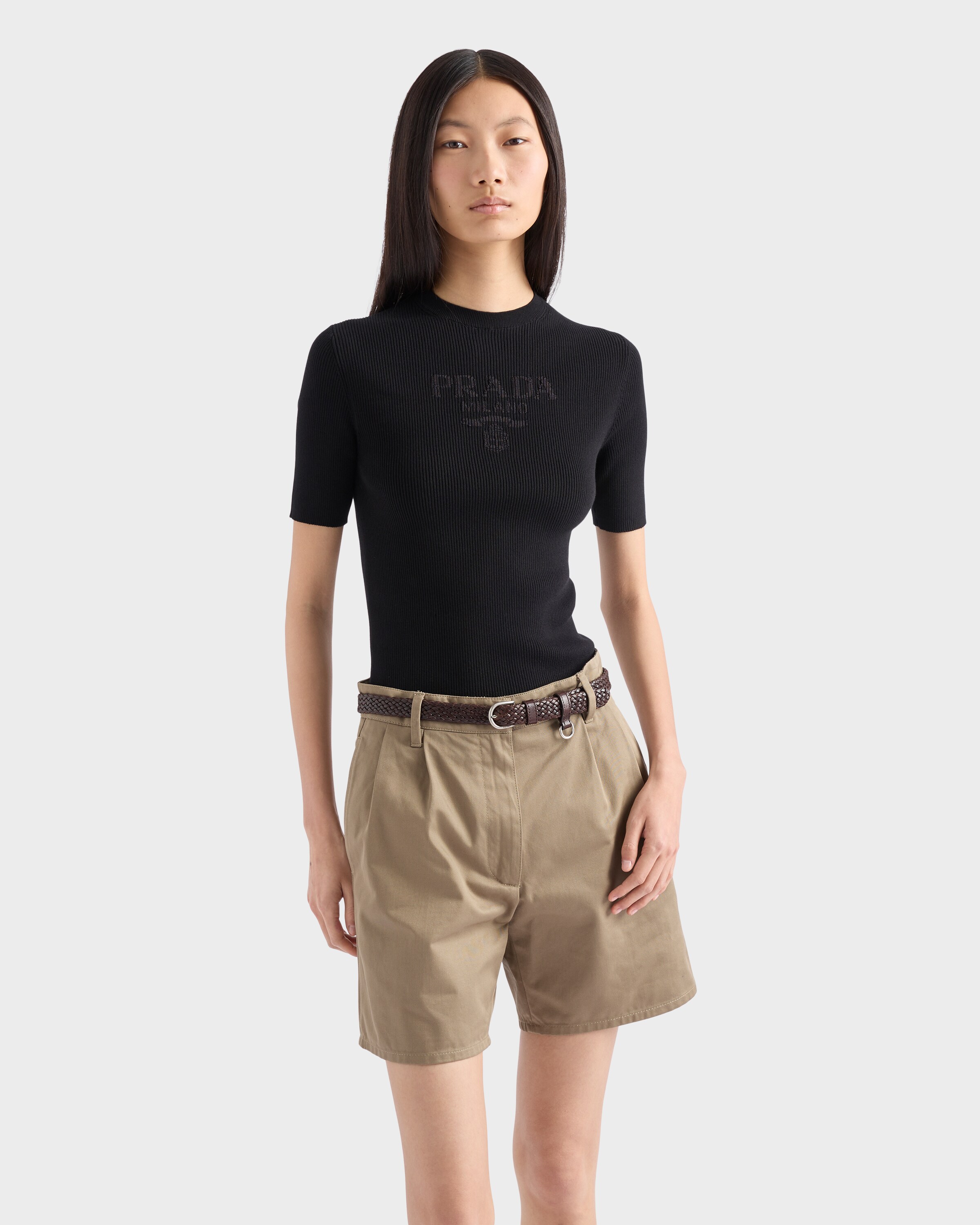 Хлопковый свитер с круглым вырезом Prada, черный 142 518₽