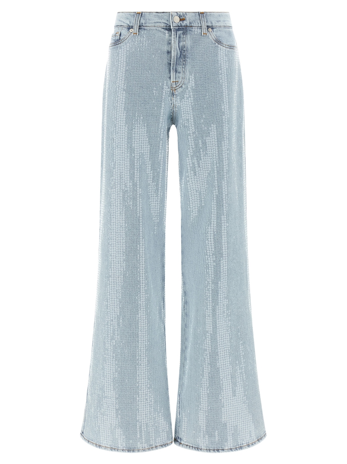 Джинсы из хлопкового денима 'Lotta' с аппликацией из пайеток в тон по всей поверхности, модель на низкой талии с широкими расклешенными штанинами, застежка на пуговицу спереди, пять карманов и задний фирменный ярлык.