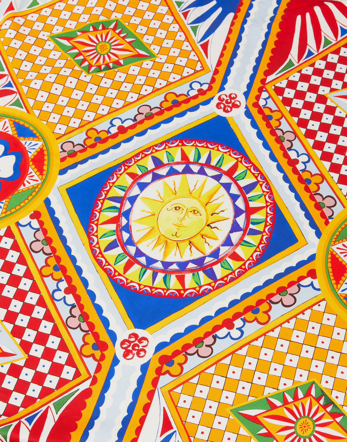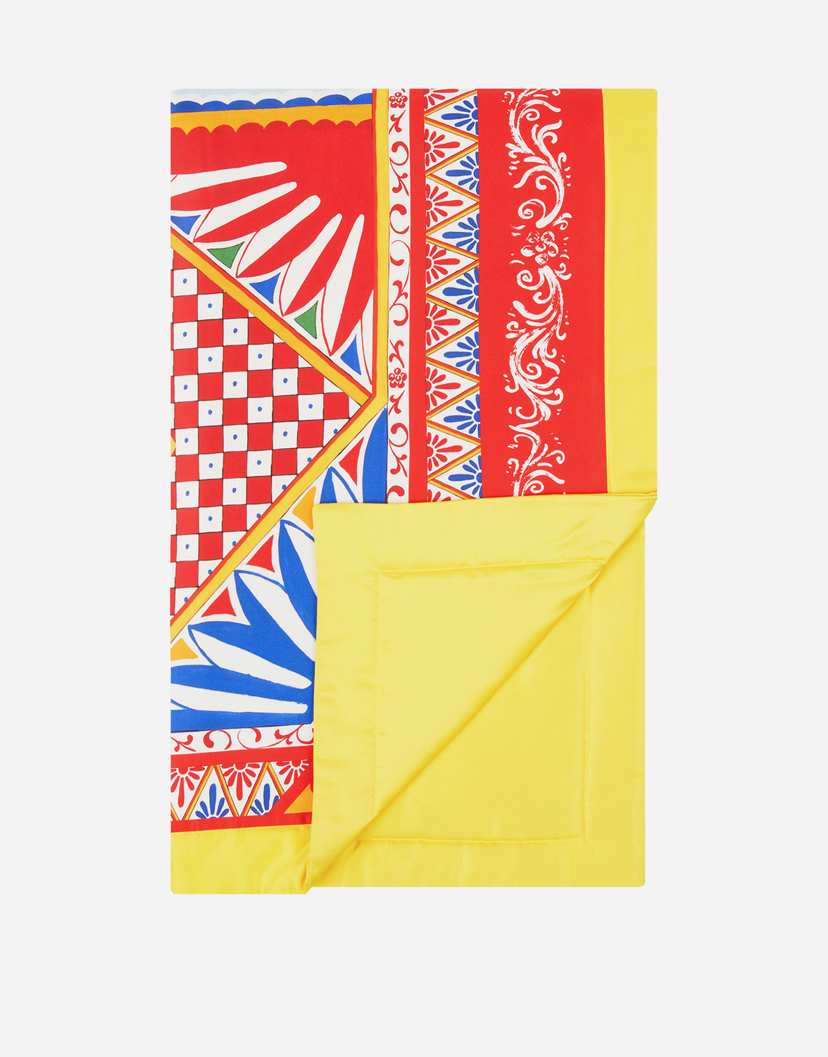 Это легкое стеганое одеяло из шелкового твила перекликается с мотивом "Карретто Сицилиано" благодаря архивному принту в стиле фуляр: это фольклорный элемент, связанный с местом, наполненным традициями, искусным ремеслом, пейзажами и уникальными красками, которые всегда были в основе эстетики Dolce&Gabbana.