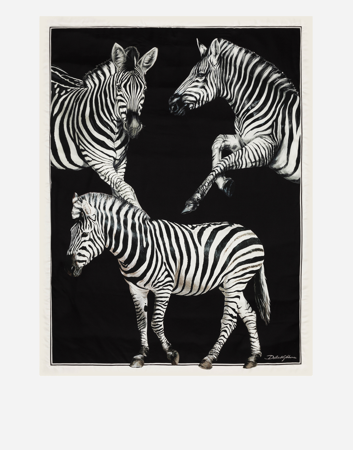 Зебровый узор на этом легком стеганом одеяле из шелкового твила символически отражает дуализм, лежащий в основе ДНК Dolce&Gabbana, являясь стилистическим элементом, балансирующим между прошлым и будущим, ремесленным мастерством и технологиями, традициями и инновациями.