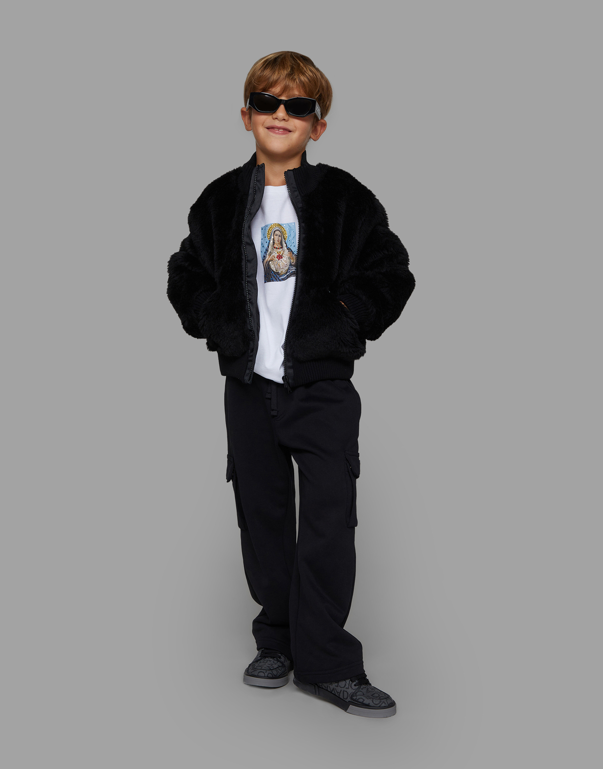 Коллекция FW 23-24 для мальчиков передает суть Dolce&Gabbana. Чистый объем, внимание к деталям, пропорции и посадка играют вокруг черного цвета Сицилии, который является безусловной звездой. Он был переосмыслен в логотипе, толстовках, джинсах и с использованием особых техник, чтобы создать коллекцию Mini Me, в которой дети могут играть во взрослых, вдохновленную взрослой коллекцией, где наши истоки, вулканы Этна и Стромболи, вместе с черным цветом, передают настоящую суть Dolce&Gabbana.