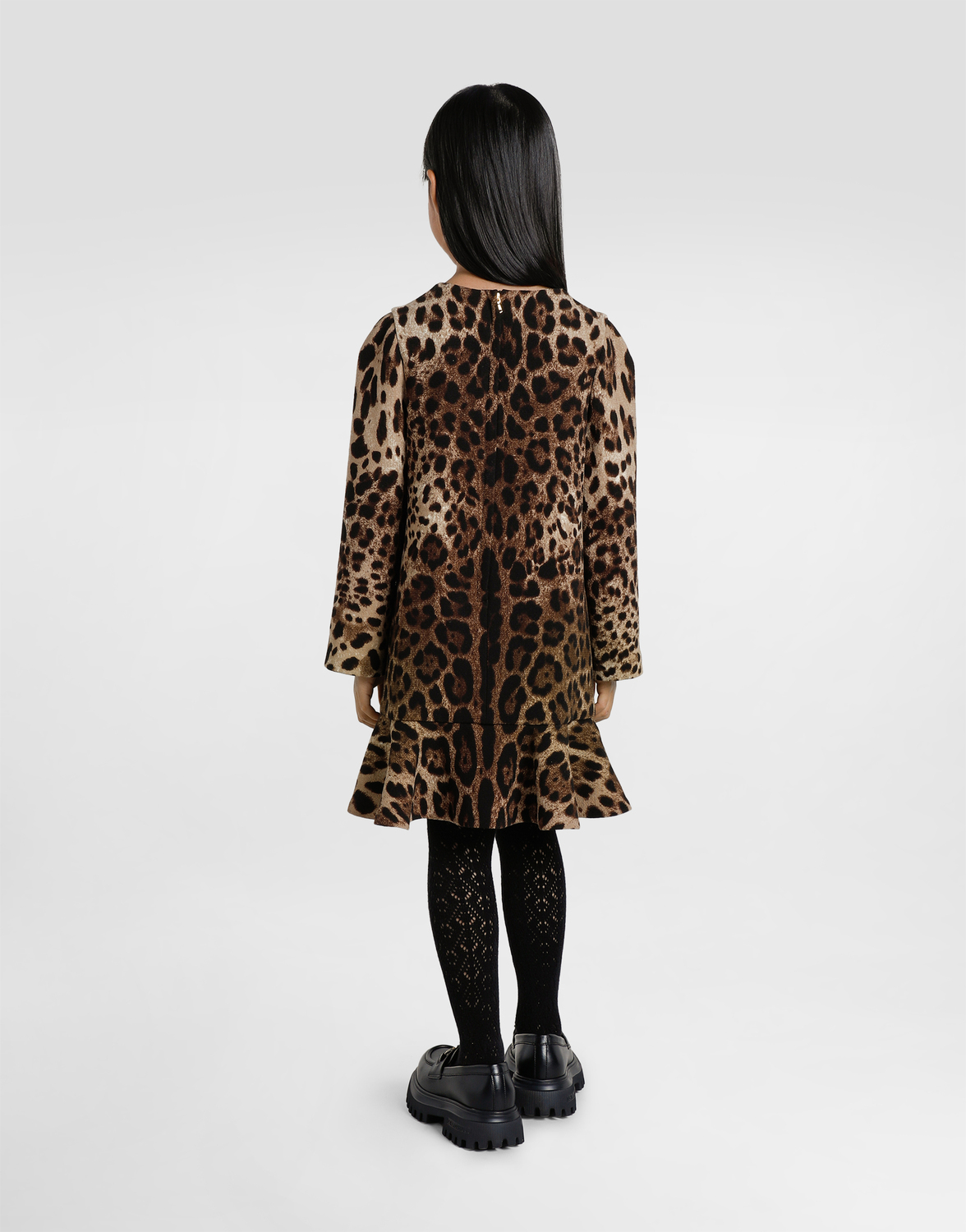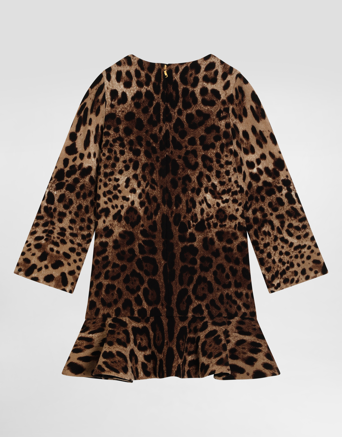 Платье из двойного крепа с леопардовым принтом Dolce&Gabbana, мультиколор