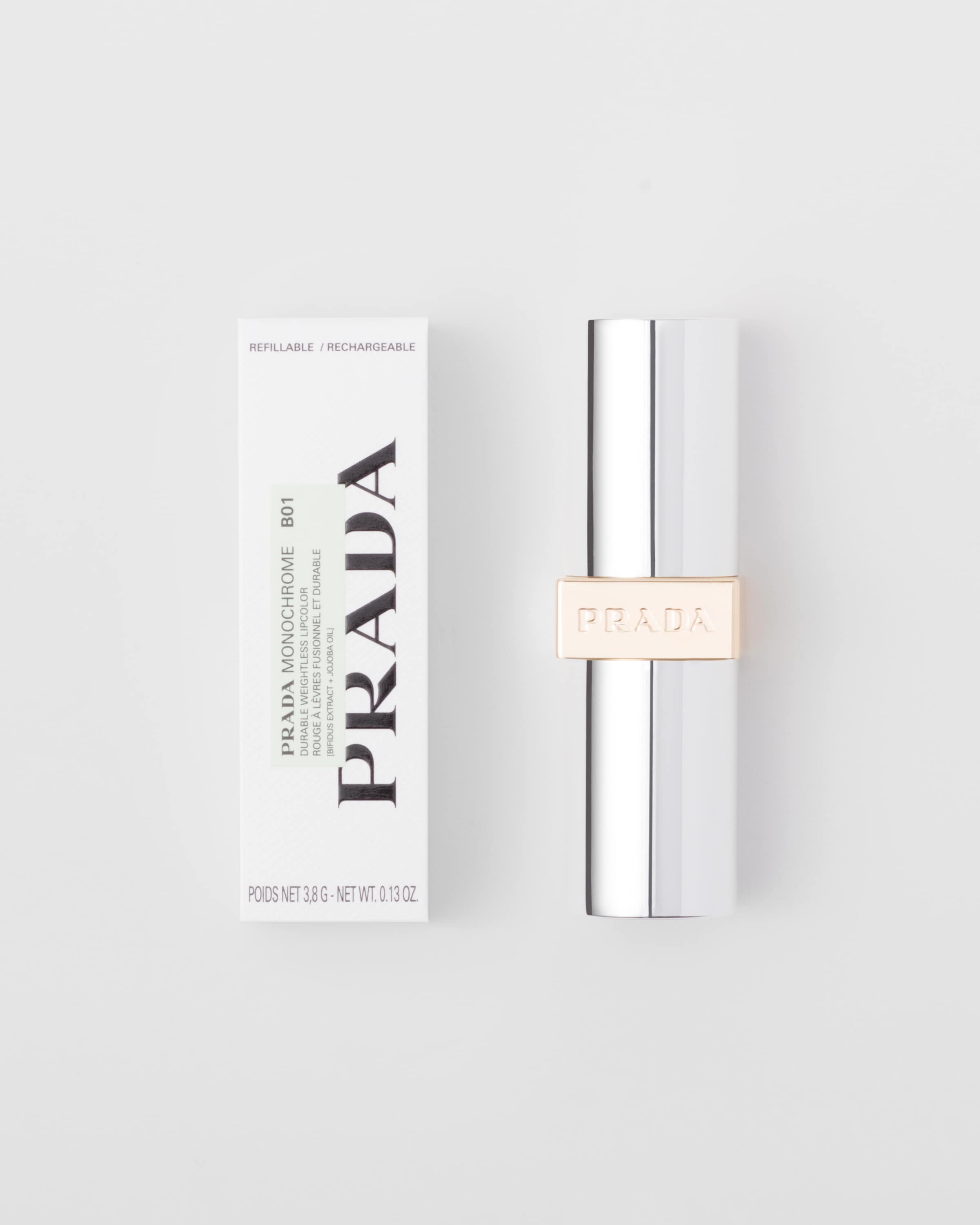 • Созданная с использованием технологии Micro-Fit и обогащенная экстрактом бифидус и маслом жожоба, губная помада Prada Monochrome легко наносится, сливаясь с губами и оставаясь невесомой в течение всего дня. Коллекция Hyper Matte представлена палитрой насыщенных оттенков на черной основе и всего с тремя чистыми пигментами для воспроизведения глубины цвета кожи Saffiano.12 часов* стойкого интенсивного цвета с ультраматовым финишем (*потребительский тест на 193 участниках)