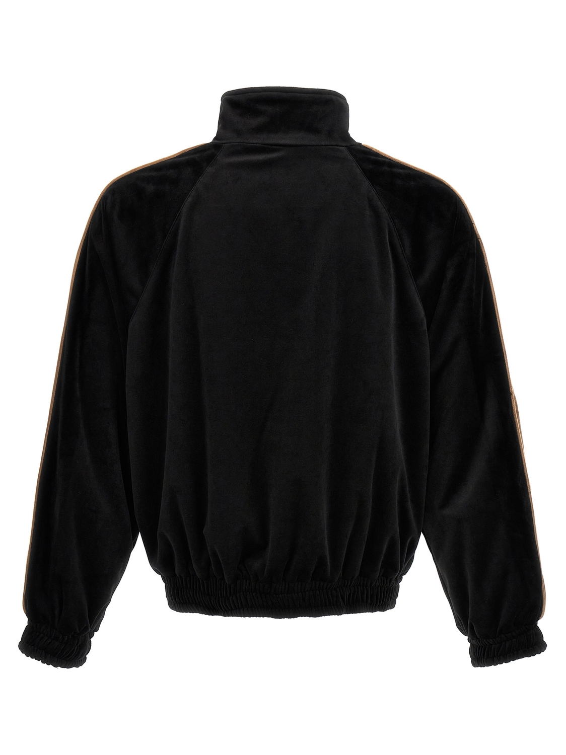 Бархатный свитшот «Sky lounge» с контрастными полосами, застежкой на молнии и контрастной вышивкой.