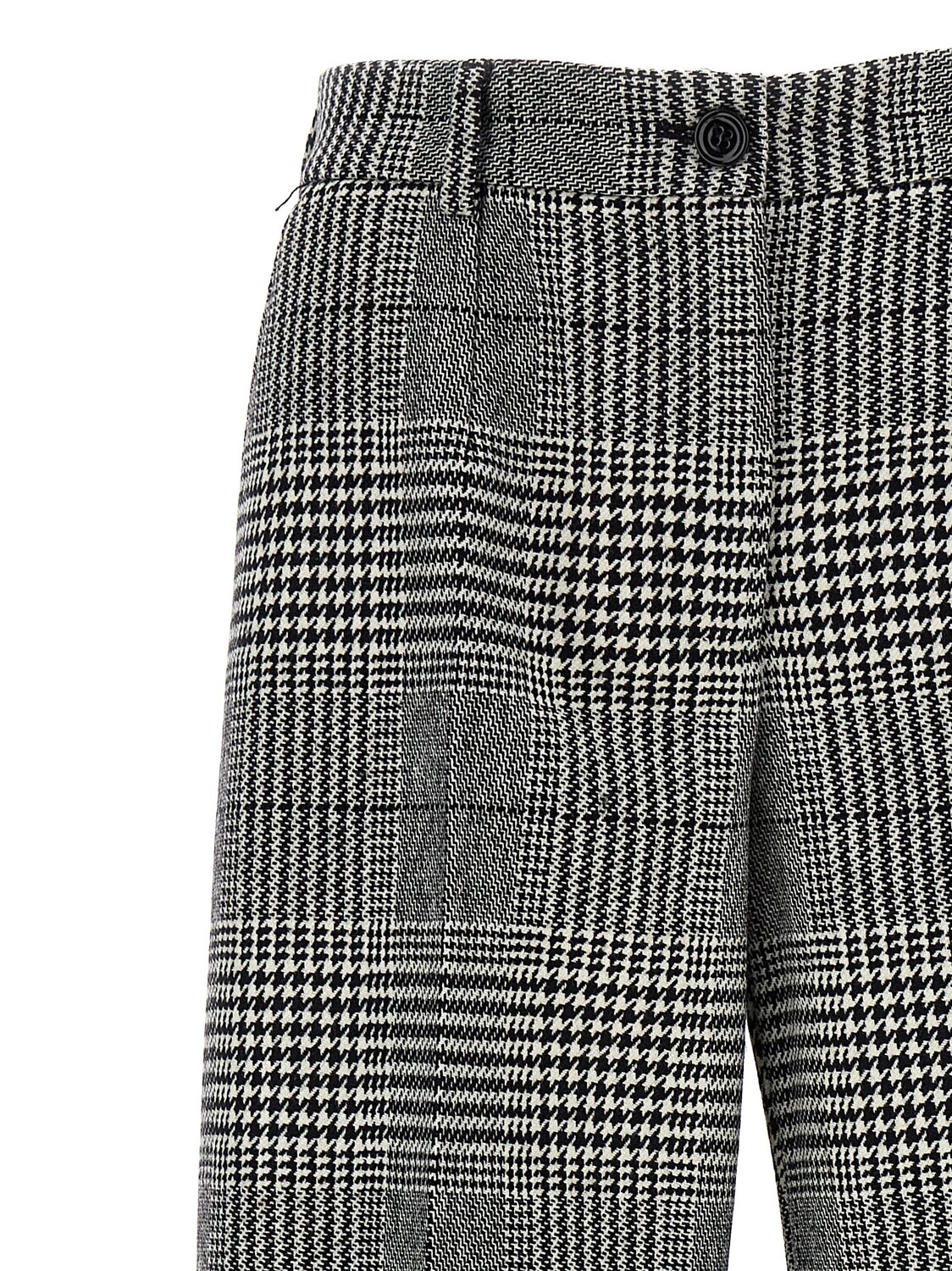 Брюки со строгим покроем из кашемировой ткани с узором "гусиная лапка", прямой крой, заутюженная стрелка, карманы, застежка на пуговицу, крючок и молнию.
