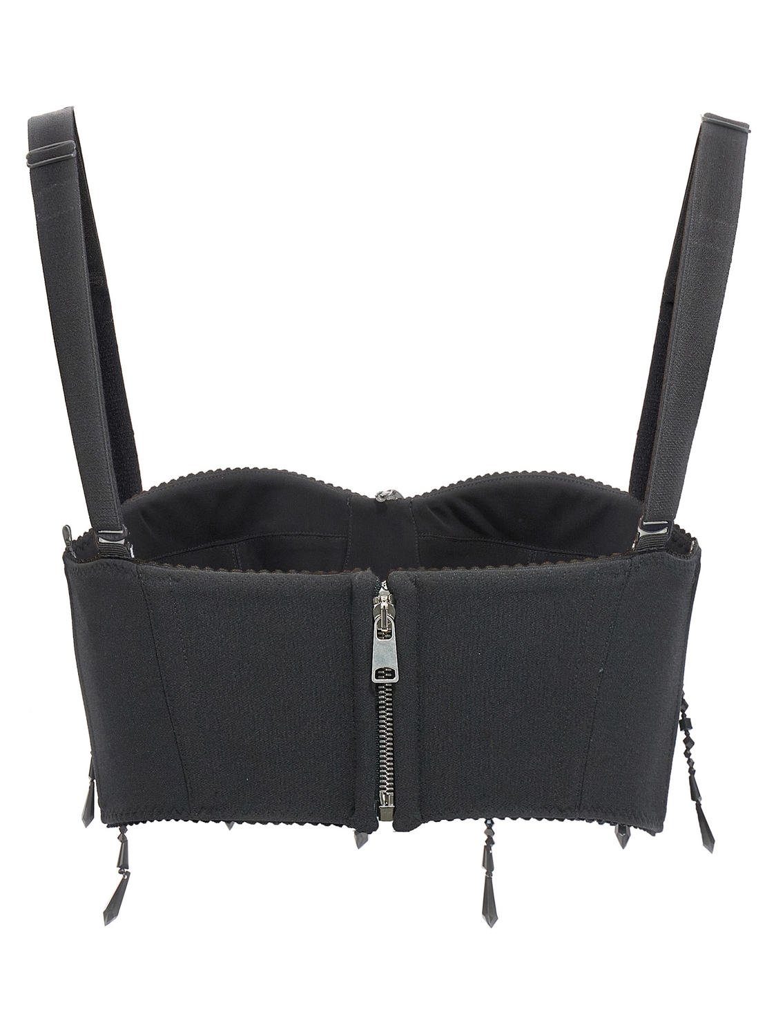 Бюстгальтер-кроп-топ с аппликациями из подвесных бусин, на эластичных и регулируемых бретелях.
