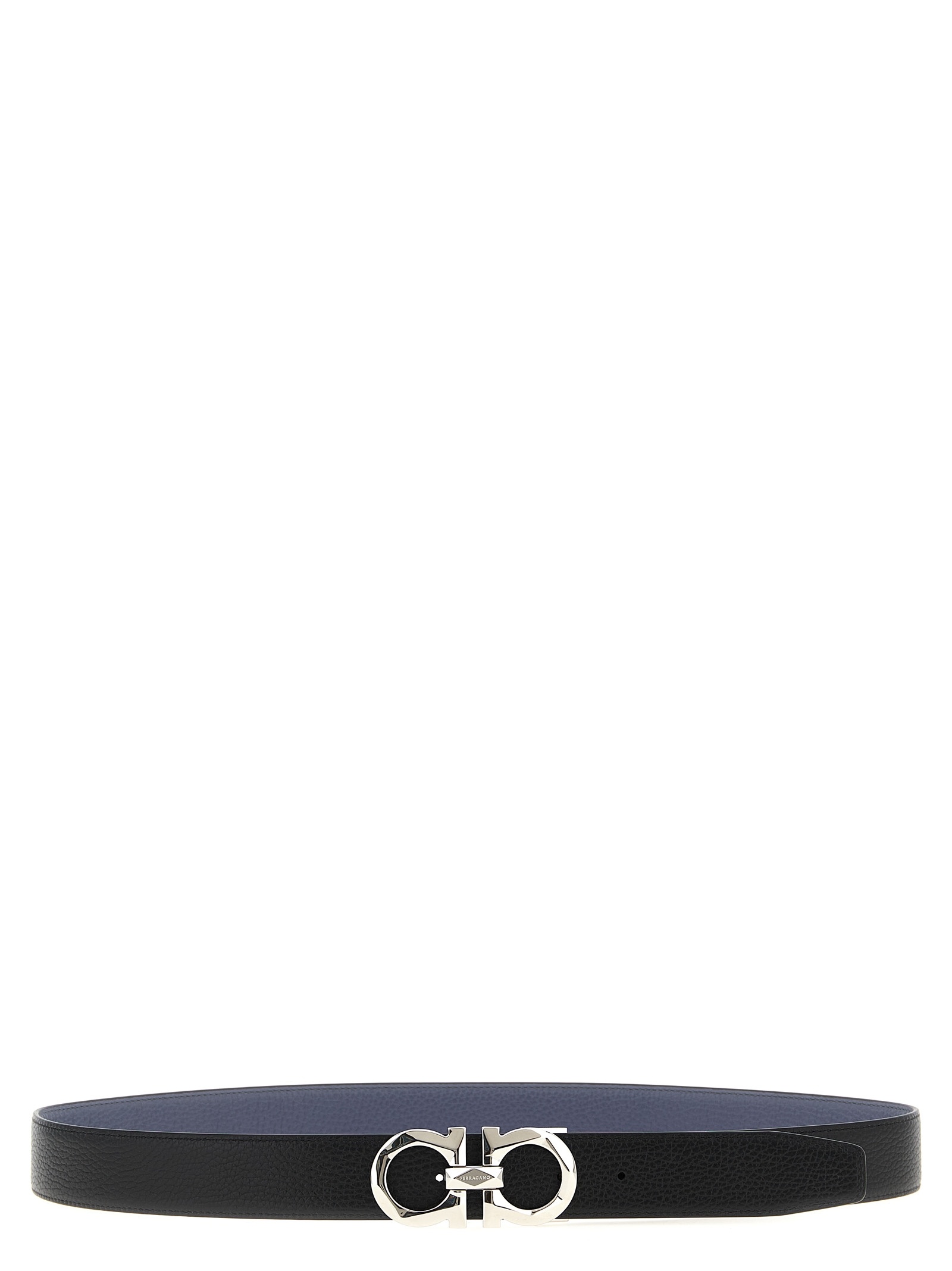Двусторонний ремень из тисненой телячьей кожи с двойной металлической пряжкой «Gancini» с граненой обработкой.