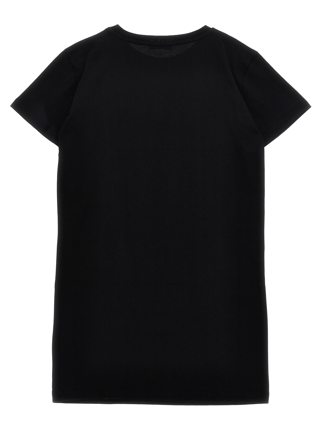 Детское хлопковое платье с рельефным логотипом на груди, круглым вырезом и короткими рукавами.