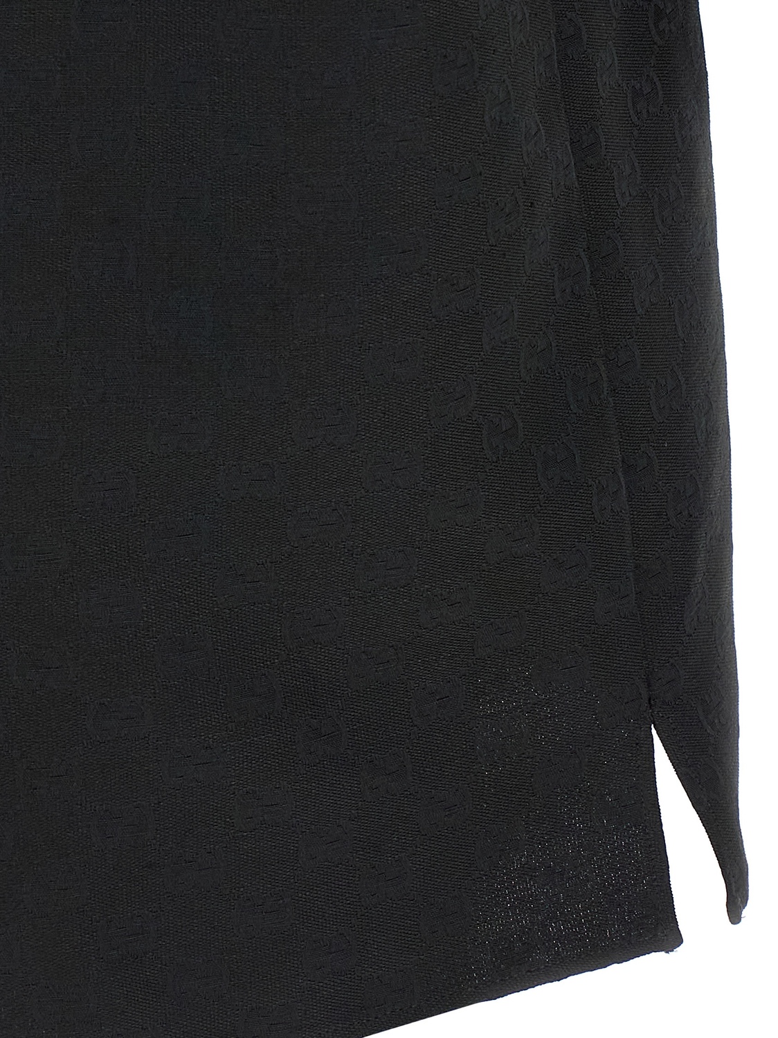Рубашка из жаккардовой ткани GG в стиле «Bowling» с V-образным вырезом с лацканами, застежкой на пуговицы, нагрудным карманом, боковыми разрезами, короткими рукавами.