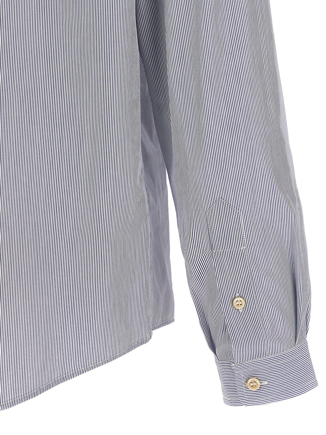 Рубашка из хлопка в полоску, воротник, застежка на пуговицы спереди, накладной карман с вышивкой логотипа, длинные рукава с манжетами.
