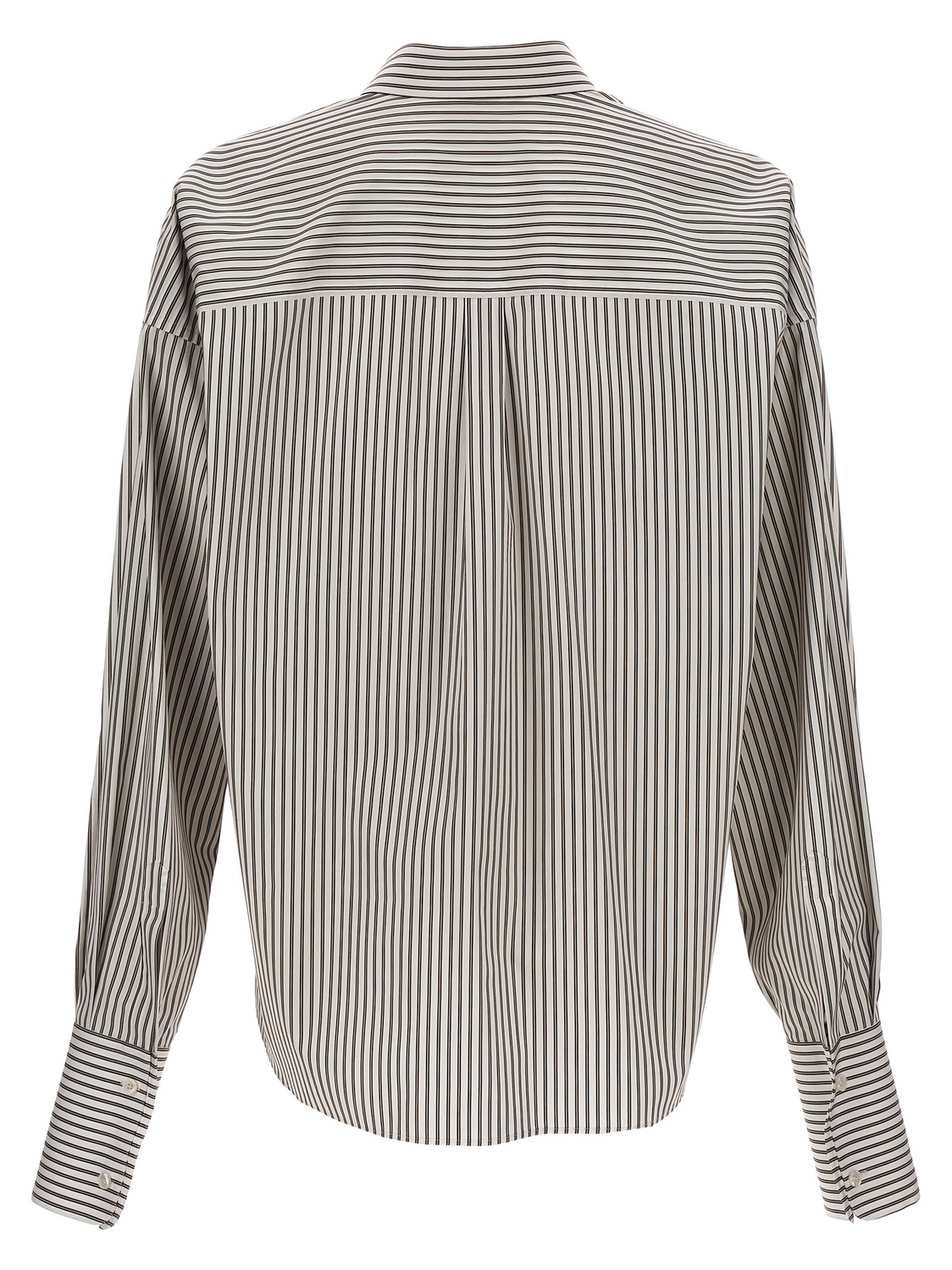 Рубашка из хлопкового поплина в полоску с застежкой на пуговицы, длинными рукавами с манжетами.