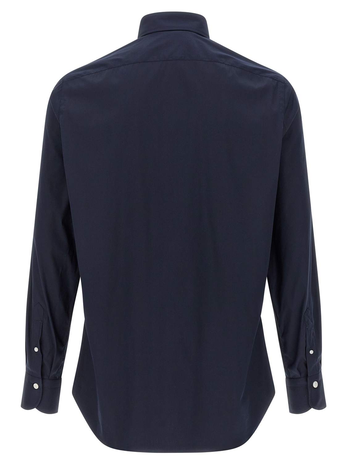 Хлопковая рубашка 'Napoli' с застежкой на пуговицы, длинными рукавами с манжетами, контрастной сатиновой деталью с логотипом на боковых разрезах.