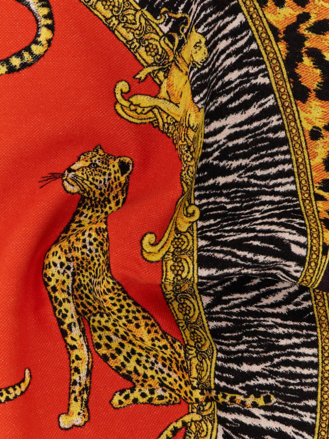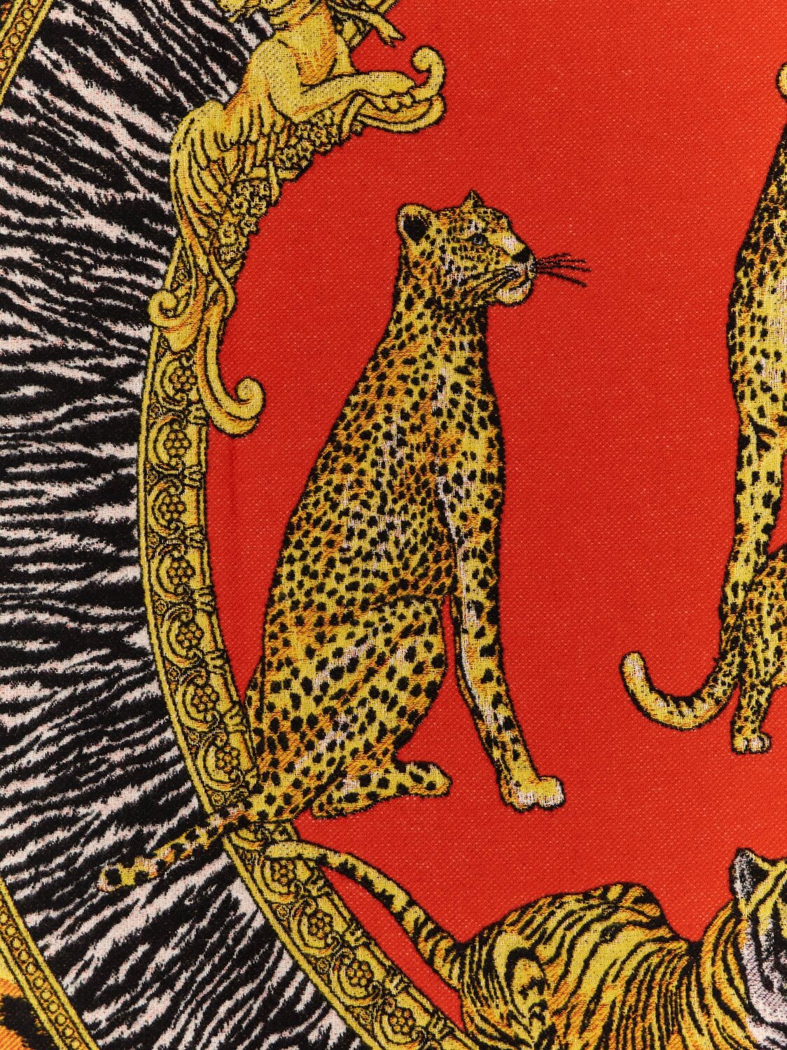Шерстяной плед с жаккардовым принтом «Wild Cats» по всей поверхности, с бахромой.