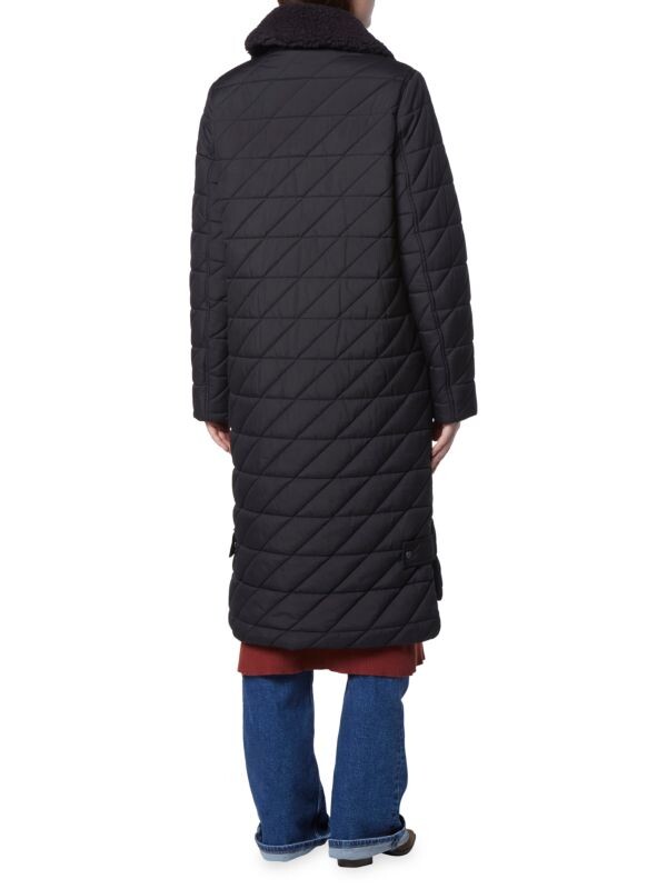 «Maxine» — это длинный пуховик со стеганым узором в виде ромбов и акцентами из искусственной шерпы на воротнике. Модель с современным ступенчатым краем и водоотталкивающей тканью хорошо сочетается с вещами для холодной погоды.Расклешенный воротник из искусственного шерпа.Длинные рукава.Молния спереди. Потайные пуговицы спереди.Два передних кармана.Подкладка.Ткань 1: полиэстер.Ткань 2: Полиэстер/искусственный шелк/спандекс.Наполнитель: полиэстер.Сухая чистка.Импорт.