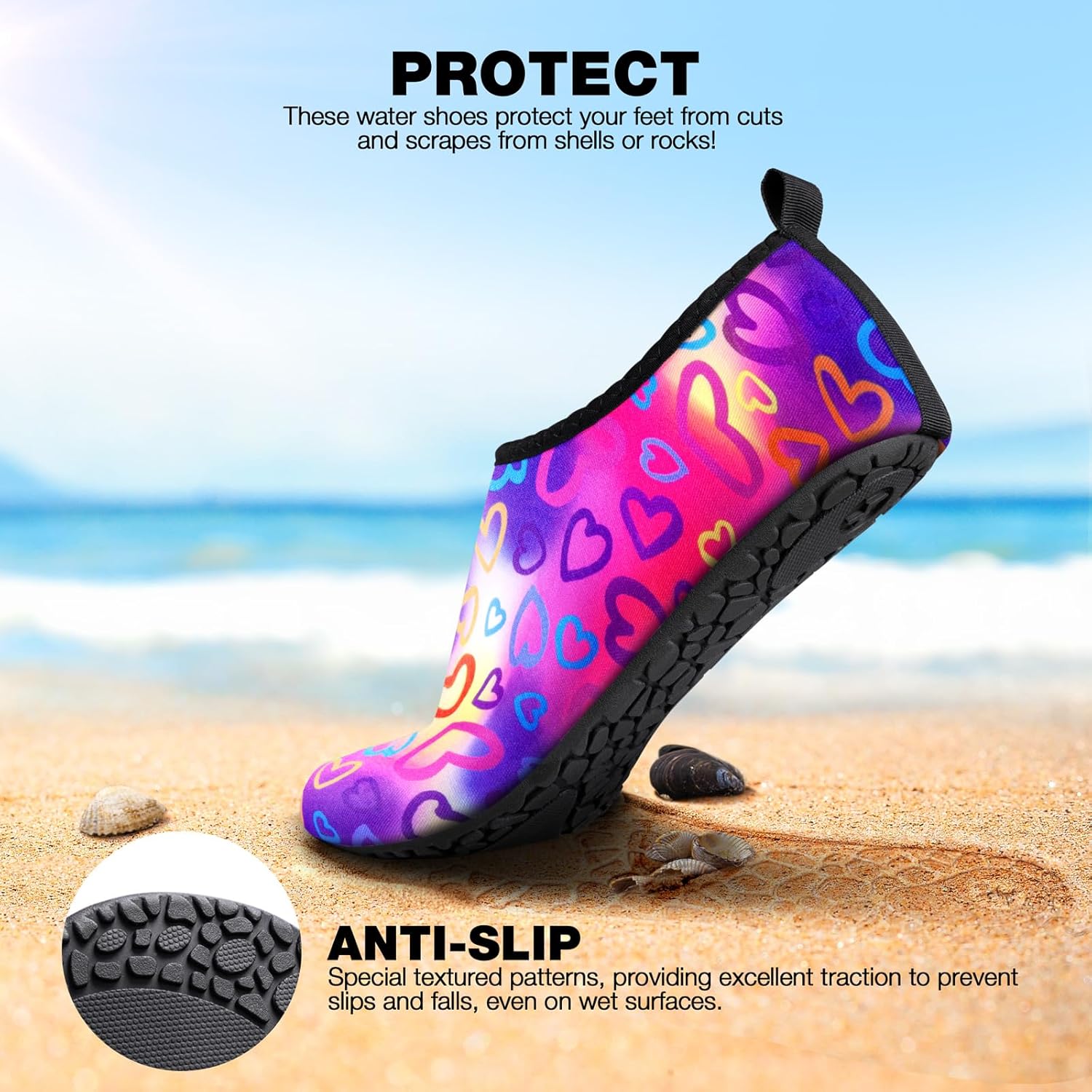 Комфортная ткань: Верхняя часть водных обуви сделана из гладкого и эластичного материала, который дышащий, эластичный и быстро высыхает. Они мягкие, как носки, идеально подходят по ноге. Гладкий и гибкий дизайн обуви для босоногой ходьбы защищает ваши лодыжки и облегчает надевание и снятие. Разнообразные стили и размеры: Водные носки SIMARI доступны в различных стилях, включая разнообразные принты и насыщенные цвета, позволяя выбрать стиль, который лучше всего соответствует вашим личным предпочтениям и случаю. Наши водные туфли для женщин и мужчин представлены в различных вариантах размеров, чтобы соответствовать разным потребностям ног мужчин и женщин, мальчиков и девочек. В описании продукта мы предоставляем таблицу размеров, чтобы помочь вам точно выбрать подходящий размер. Защитные: Наши пляжные туфли защищают ваши ноги со всех сторон. Подошва изготовлена из материала TPR, она прочная и долговечная.