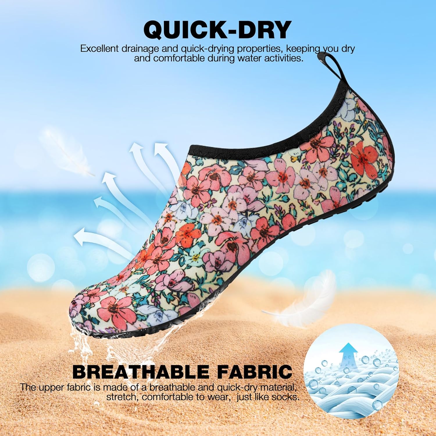 Комфортная ткань: Верхняя часть водных обуви сделана из гладкого и эластичного материала, который дышащий, эластичный и быстро высыхает. Они мягкие, как носки, идеально подходят по ноге. Гладкий и гибкий дизайн обуви для босоногой ходьбы защищает ваши лодыжки и облегчает надевание и снятие. Разнообразные стили и размеры: Водные носки SIMARI доступны в различных стилях, включая разнообразные принты и насыщенные цвета, позволяя выбрать стиль, который лучше всего соответствует вашим личным предпочтениям и случаю. Наши водные туфли для женщин и мужчин представлены в различных вариантах размеров, чтобы соответствовать разным потребностям ног мужчин и женщин, мальчиков и девочек. В описании продукта мы предоставляем таблицу размеров, чтобы помочь вам точно выбрать подходящий размер. Защитные: Наши пляжные туфли защищают ваши ноги со всех сторон. Подошва изготовлена из материала TPR, она прочная и долговечная.