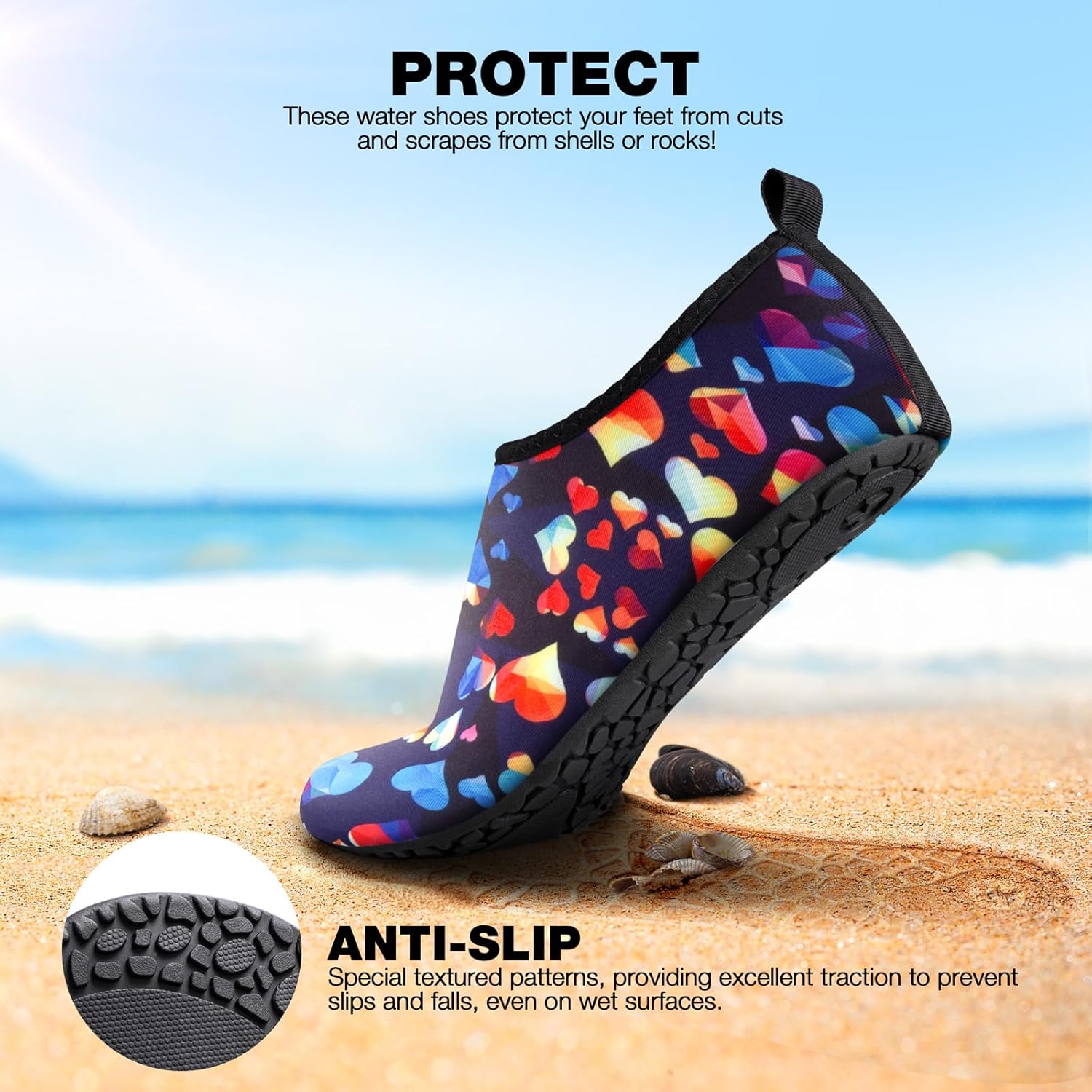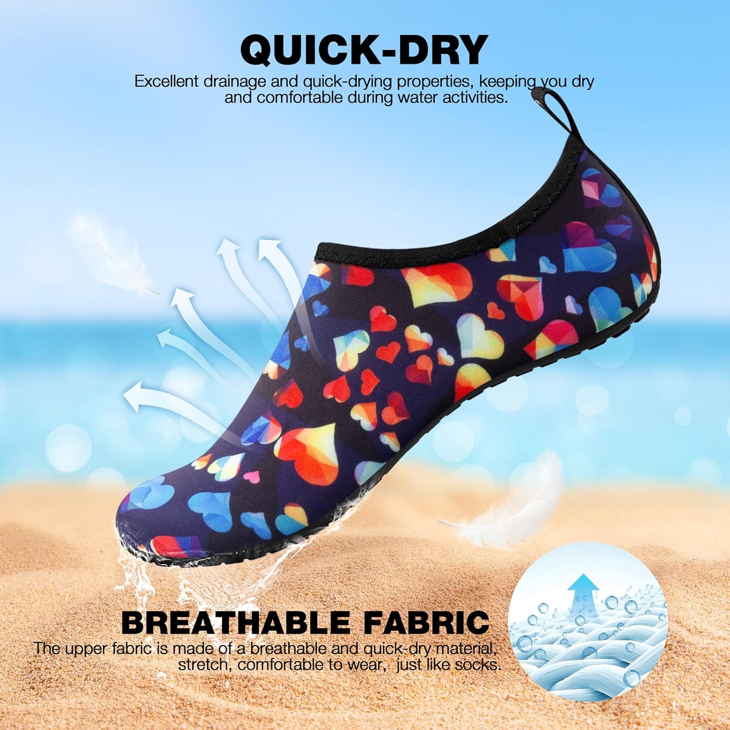Комфортная ткань: Верхняя часть водных обуви сделана из гладкого и эластичного материала, который дышащий, эластичный и быстро высыхает. Они мягкие, как носки, идеально подходят по ноге. Гладкий и гибкий дизайн обуви для босоногой ходьбы защищает ваши лодыжки и облегчает надевание и снятие. Разнообразные стили и размеры: Водные носки SIMARI доступны в различных стилях, включая разнообразные принты и насыщенные цвета, позволяя выбрать стиль, который лучше всего соответствует вашим личным предпочтениям и случаю. Наши водные туфли для женщин и мужчин представлены в различных вариантах размеров, чтобы соответствовать разным потребностям ног мужчин и женщин, мальчиков и девочек. В описании продукта мы предоставляем таблицу размеров, чтобы помочь вам точно выбрать подходящий размер. Защитные: Наши пляжные туфли защищают ваши ноги со всех сторон. Подошва изготовлена из материала TPR, она прочная и долговечная.