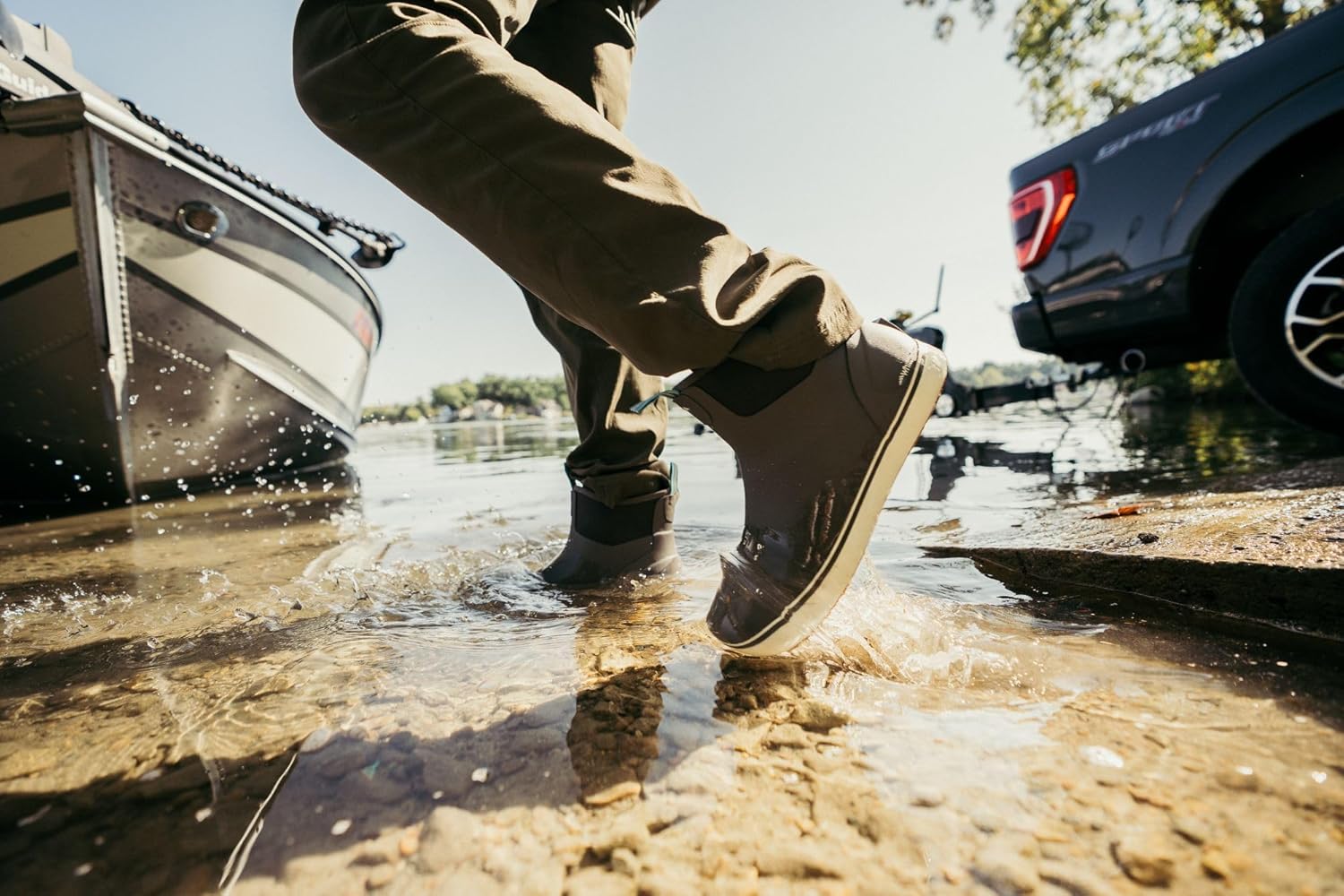ВОДОНЕПРОНИЦАЕМАЯ ЗАЩИТА: 100% водонепроницаемая конструкция с 3 мм неопреном и 2 мм подкладкой из воздушной сетки сохраняет ноги сухими и комфортными в сырую и непредсказуемую погоду. ПРОЧНОЕ СОПРОТИВЛЕНИЕ ПЕРЕКАТАМ: Подошва из резины Оксфорд с противоскользящей поверхностью обеспечивает надежное сцепление и устойчивость на скользких палубах, причалах и поверхностях лодок. КОМФОРТ НА ВЕСЬ ДЕНЬ: Долговечная стелька из ПУ обеспечивает превосходную амортизацию, поддержку свода стопы и поглощение ударов при длительном пребывании на воде. ЛЕГКО НАДЕВАТЬ: Передняя и задняя ручки и резиновый задник позволяют легко надевать и снимать обувь, обеспечивая при этом надежную и поддерживающую посадку. УНИВЕРСАЛЬНЫЙ СТИЛЬ: Чистый, низкопрофильный дизайн высотой 6 легко переходит с рыбацкой палубы на повседневную носку - идеально подходит для причала, лодки или ежедневных приключений.