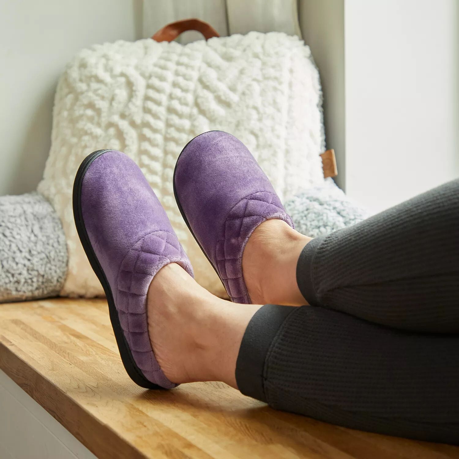 Эти женские сабо от Dearfoams имеют стеганую отделку и мягкую велюровую конструкцию.