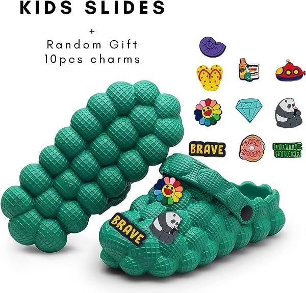 Так весело для детей: Дизайн этих детских тапочек с пузырьками был вдохновлен китайским фруктом - личи. К каждой паре тапочек мы случайным образом предоставляем 10 декоративных шармов для обуви Обновление для детей: на основе самых популярных тапочек с пузырьками мы создали детскую версию, добавив ремешки, чтобы они не спадали и защищали ступни. Удобные и легкие: Наши детские тапочки с пузырьками сделаны из высококачественного материала EVA, который обладает отличной гибкостью, долговечностью, легкостью, комфортом, воздухопроницаемостью, водонепроницаемостью и простотой в уходе. Нескользящая подошва обеспечивает равновесие как внутри помещений, так и на улице. Яркие и оригинальные: Веселые тапочки с пузырьками доступны в различных цветах для мальчиков и девочек, позволяя им самим создавать и украшать свои тапочки шармами. Отличный подарок для детей: Каждому ребенку нужна пара тапочек с пузырьками.