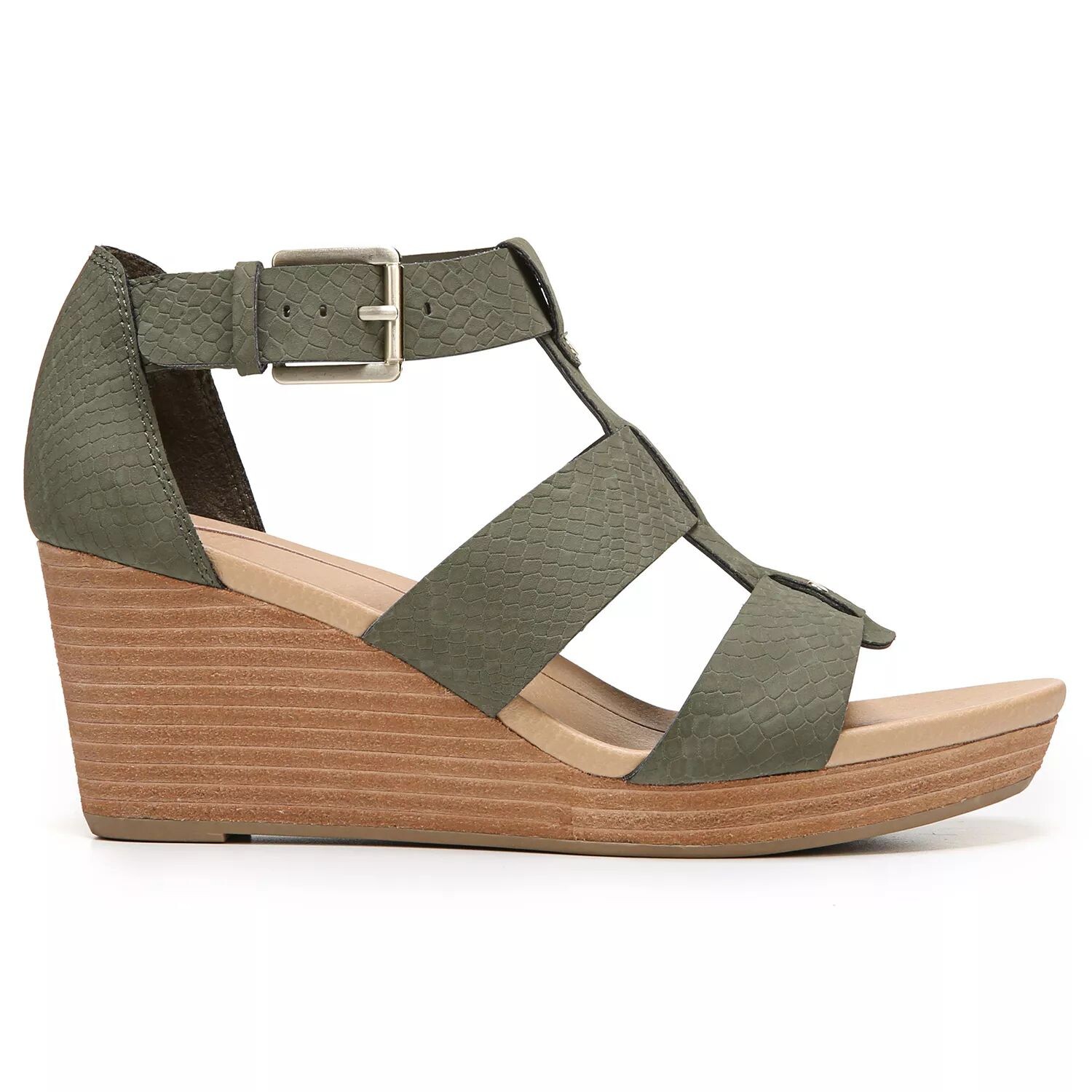 Потрясающие босоножки на танкетке. Нежная текстура со змеиным принтом и силуэт с ремешками делают эти туфли на танкетке Dr. Scholl's Barton идеальными для повседневного использования.