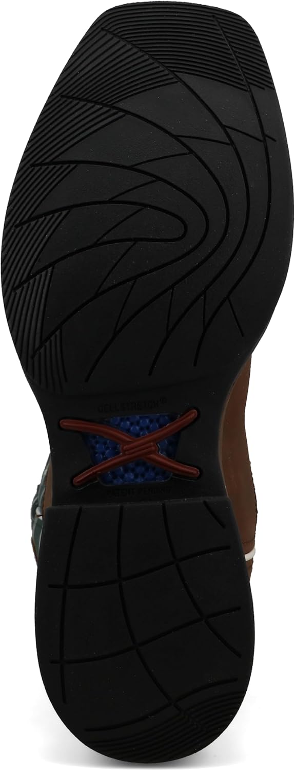 Верх из цельной кожи с 12-дюймовым голенищем из кожи TWX и проклеенными внутренними швами. Материал leather TWX использует 80% переработанной кожи, которая в противном случае оказалась бы на свалках. Технология Tech X приносит в ковбойские сапоги технологию комфорта Cell Stretch. Технология Cell Stretch реагирует, активируя более 100 отдельных точек давления, обеспечивая облакообразный комфорт в области пятки и подушечки стопы. Носок WS, подкладка из сетки Air, усиленные отверстия для натягивания.