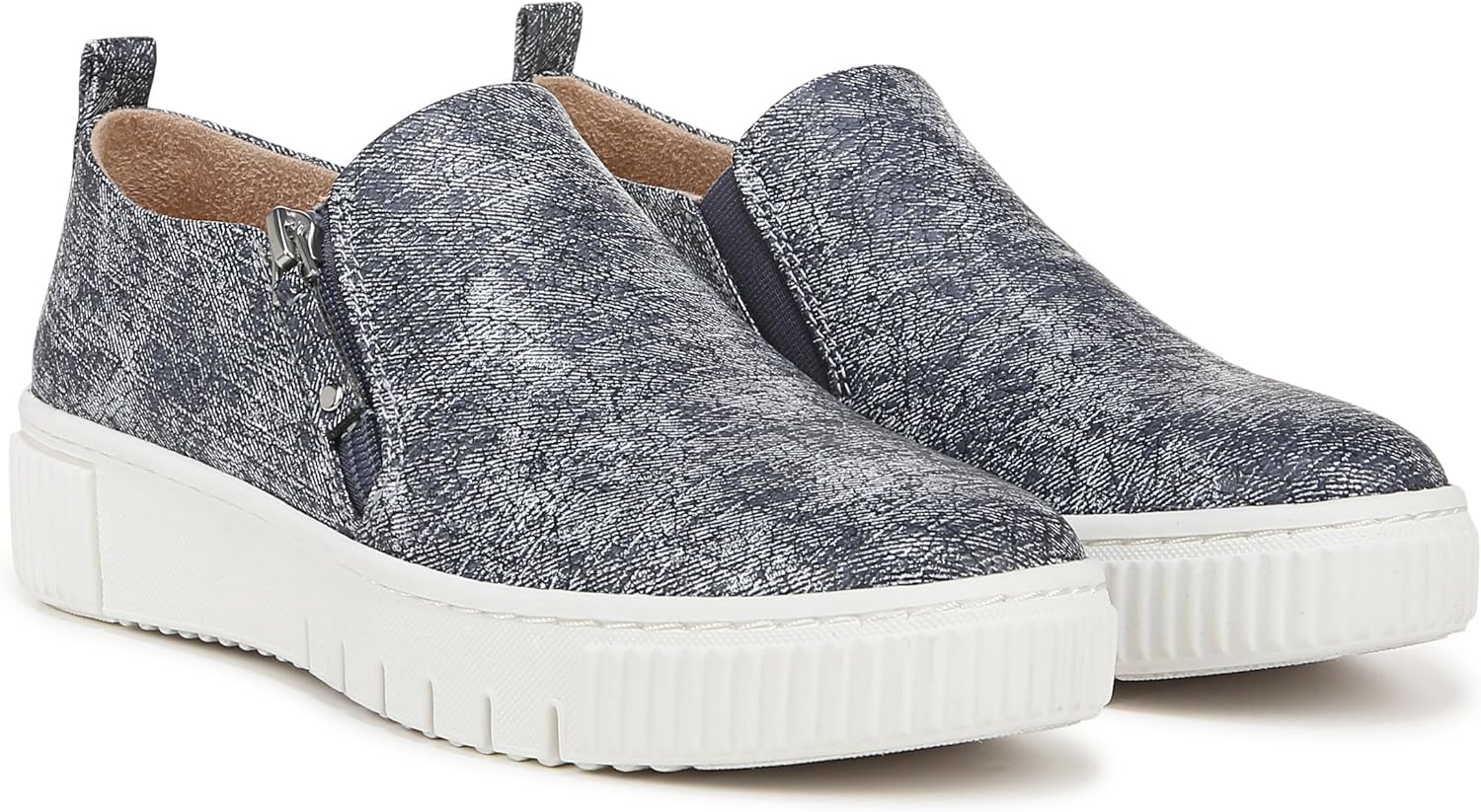 Кэжуал кроссовки без шнурков для женщин 24/7 с спортивной белой подошвой и платформой 1 3/4 Модные кроссовки с верхом из искусственных материалов и круглым носком Детали: шнурок-петля сзади и молния, кэжуал модные кроссовки для женщин Полный комфорт: мягкая подкладка из пены, поддержка свода стопы с эффектом памяти, легкая и гибкая подошва с сцеплением Кроссовки без шнурков, изготовленные с использованием некоторых более экологически чистых материалов, доступны в средних и широких размерах