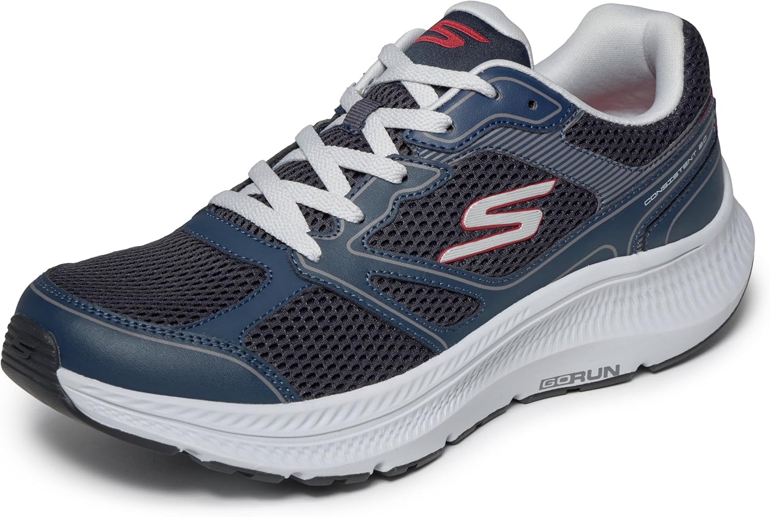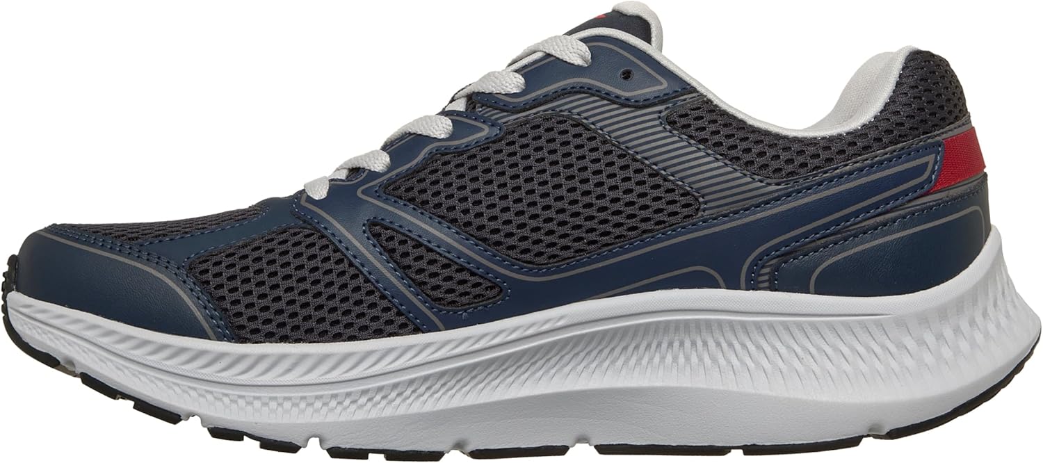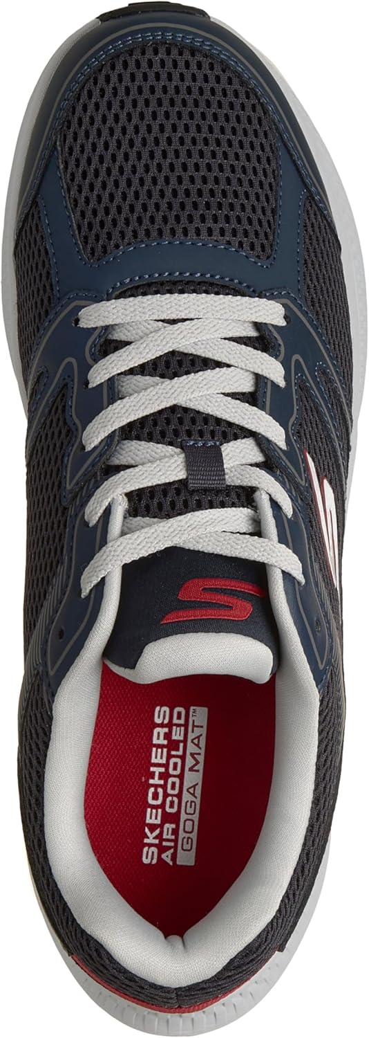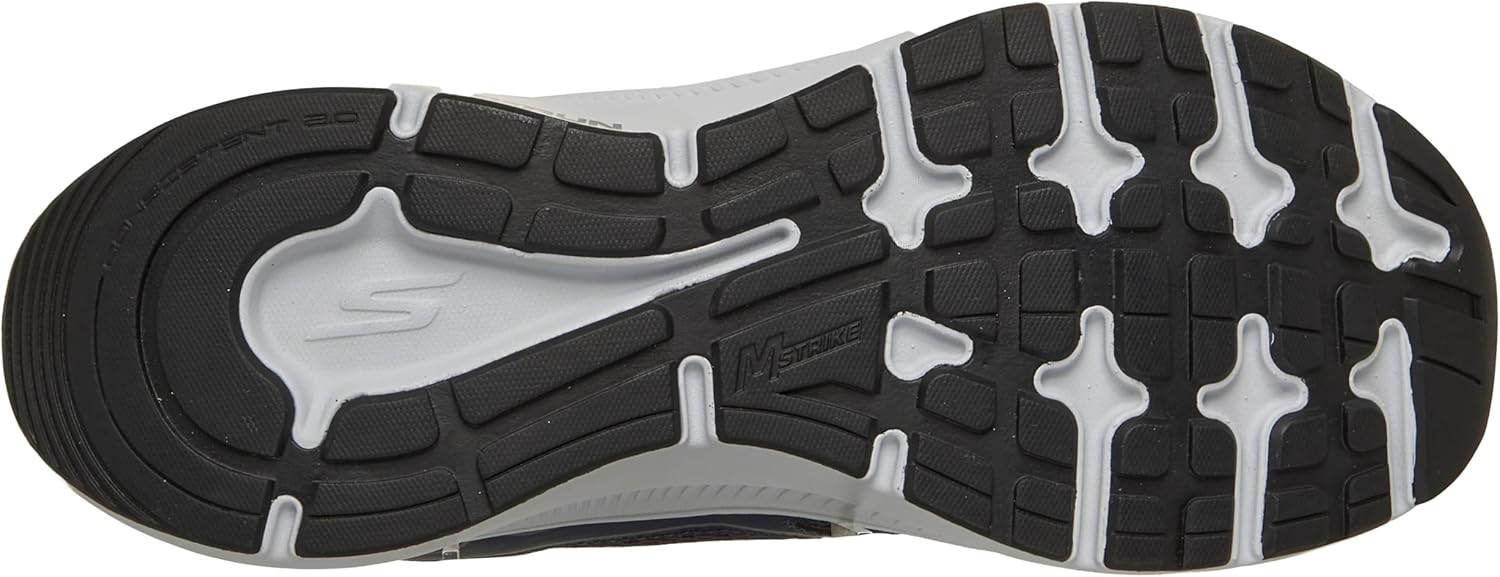 Легкая, отзывчивая амортизация средней подошвы ULTRA LIGHT Дышащая стелька Skechers Air- Cooled Goga Mat с высокоотскоковой амортизацией Технология Skechers M- Strike способствует эффективности каждого шага и обеспечивает плавные переходы от приземления к отталкиванию Дышащий спортивный верх из сетки с кожаными накладками для поддержки Гибкая подошва с отличным сцеплением