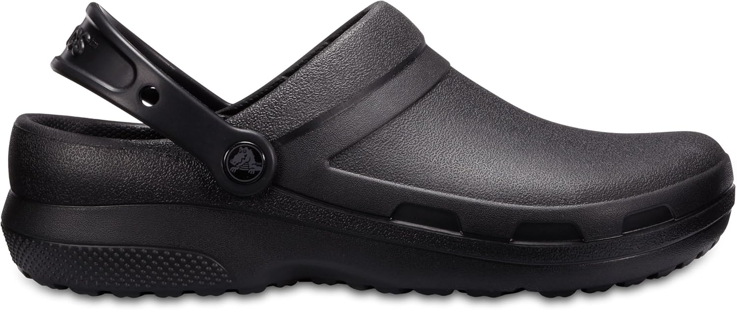 Окружите свои рабочие часы комфортом в стиле Crocs Specialist Vent с верхом из синтетического материала и перфорированными деталями по бокам. Изготовлены из Croslite, который смягчается от тепла тела, позволяя обуви подстраиваться под форму стопы для индивидуальной посадки. Плотная область верхней части стопы помогает защитить верхнюю часть ноги. Двухфункциональный ремешок обеспечивает надежную фиксацию или ношение как сабо, соответствуя вашим стилевым предпочтениям. Широкая посадка позволяет стопам естественно расширяться и сгибаться, снижая утомляемость.