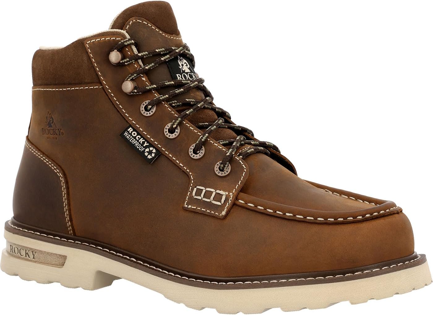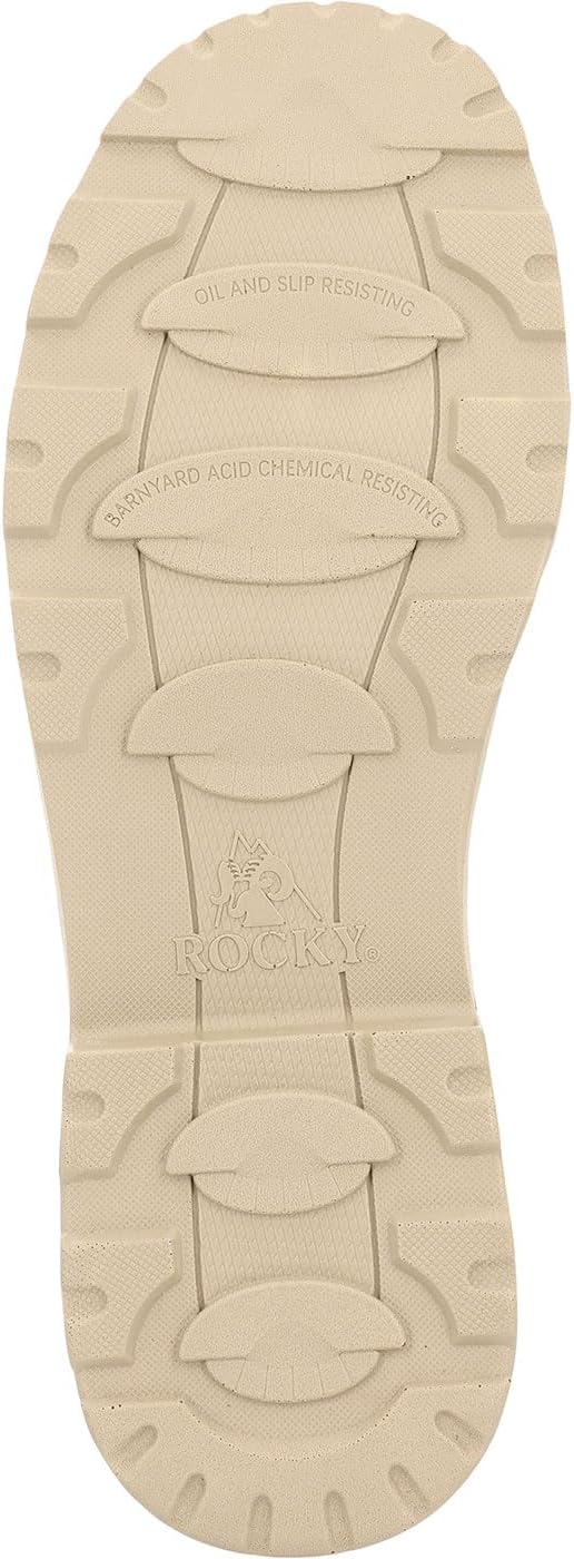 Конструкция Flex Welt, высота 6 дюймов, маслостойкая, устойчивость к скольжению, дворовой кислоте и подошва из полиуретана, устойчивая к износу, гарантированная водонепроницаемая конструкция ROCKY, стелька ROCKY Air- Port Lite из губчатого ПУ с памятью формы