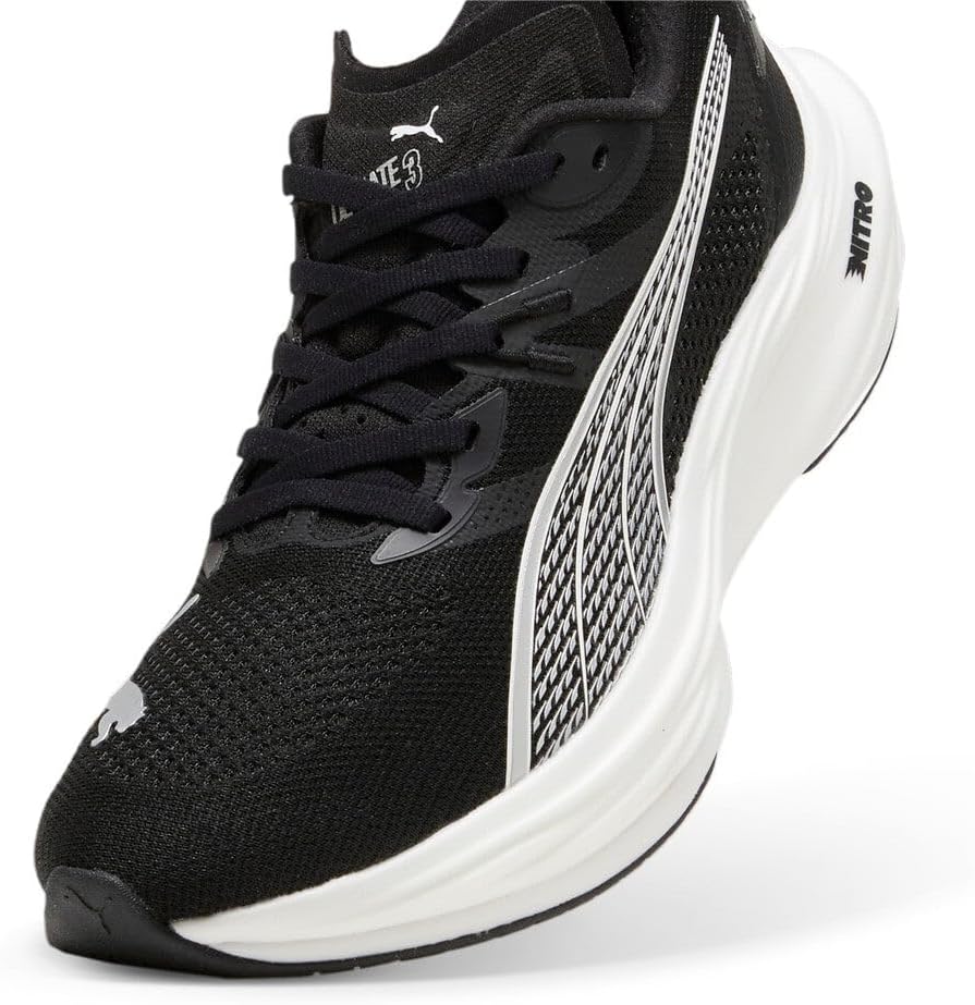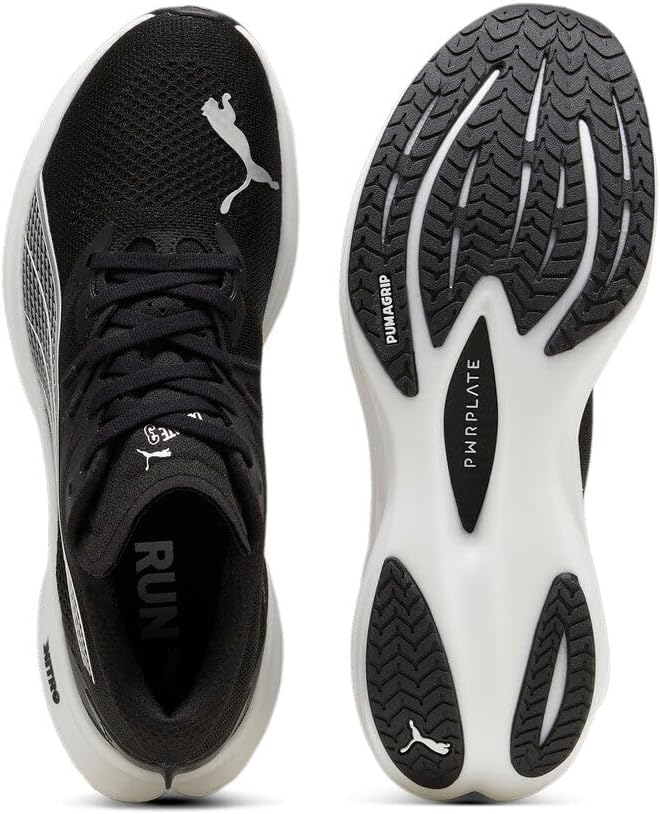 Верхняя часть обуви изготовлена как минимум из 20% переработанных материалов NITROFOAM: Современная пеноматериальная смесь с инфузией азота, разработанная для обеспечения превосходной отзывчивости и амортизации при малом весе PWRPLATE: Пластина из углеродного волокна, созданная для стабилизации средней подошвы и максимальной передачи энергии PUMAGRIP: Прочная резиновая подошва, обеспечивающая сцепление на различных поверхностях.