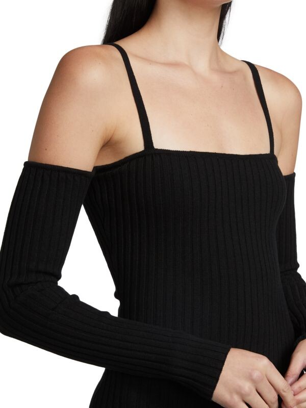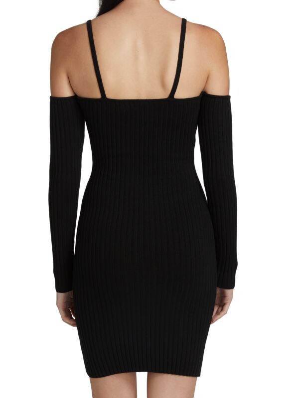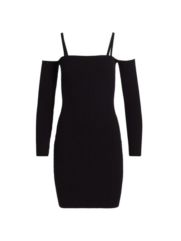 Мини-платье с длинными рукавами и вырезом с открытыми плечами.