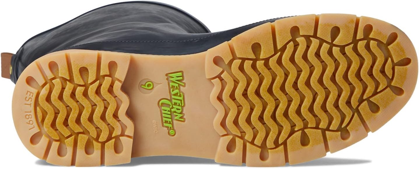 Водонепроницаемые резиновые сапоги Наши женские печатные дождевые сапоги Western Chief изготовлены из резины, которая водонепроницаема и долговечна. Ручная вулканизированная конструкция предотвращает слабые места в швах и позволяет создавать наши интересные дизайны. Мягкая и уютная подкладка из поли-хлопка Мы используем мягкую подкладку из смеси полиэстера и хлопка для комфорта наших женских сапог. Подкладка также впитывает влагу. В этих сапогах ваши ноги останутся сухими, уютными и теплыми! Удобная стелька Мы знаем, что стоять на ногах продолжительное время тяжело, поэтому в наших сапогах мы используем удобные стельки EVA. Стельки съемные, что облегчает их чистку и замену. Подошва с протектором из резины Наши женские сапоги оснащены противоскользящей подошвой с протектором, которая обеспечивает сцепление на влажных поверхностях.